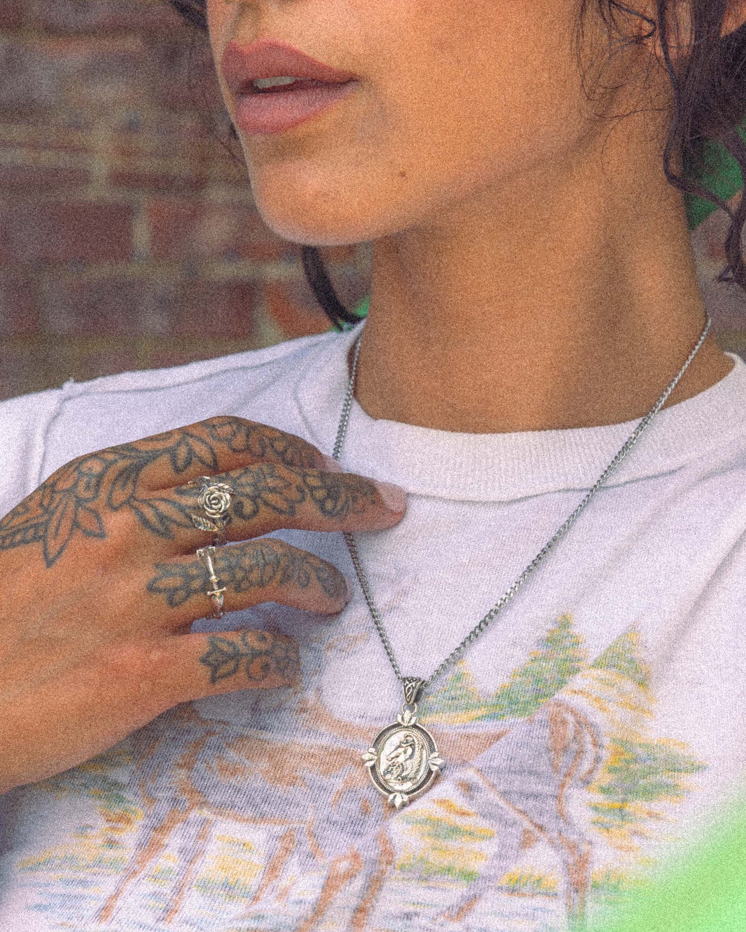 Our jewelry is cast from .925 sterling silver and surgical-grade stainless steel, rigorously tested for purity, strength, and longevity. We source real, ethically mined stones for their texture and natural character, setting each one by hand to lock in both beauty and durability.