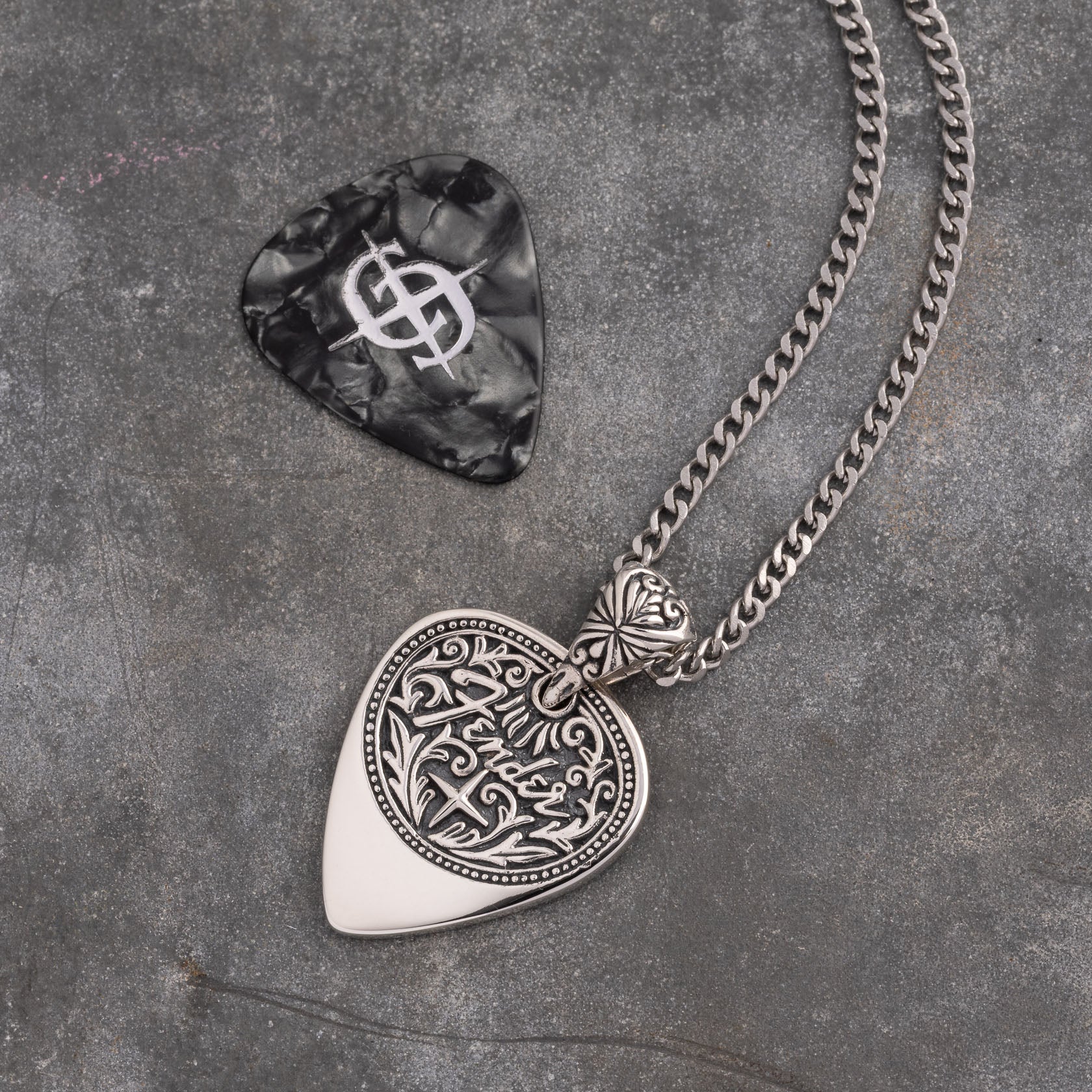 Designed in collaboration with revolutionary guitar makers Fender. The Plectrum pendant serves as a symbol of the passion poured into a musician’s craft over countless hours of slapping the strings. A token of the triumphs and sacrifices made on the road to perfection