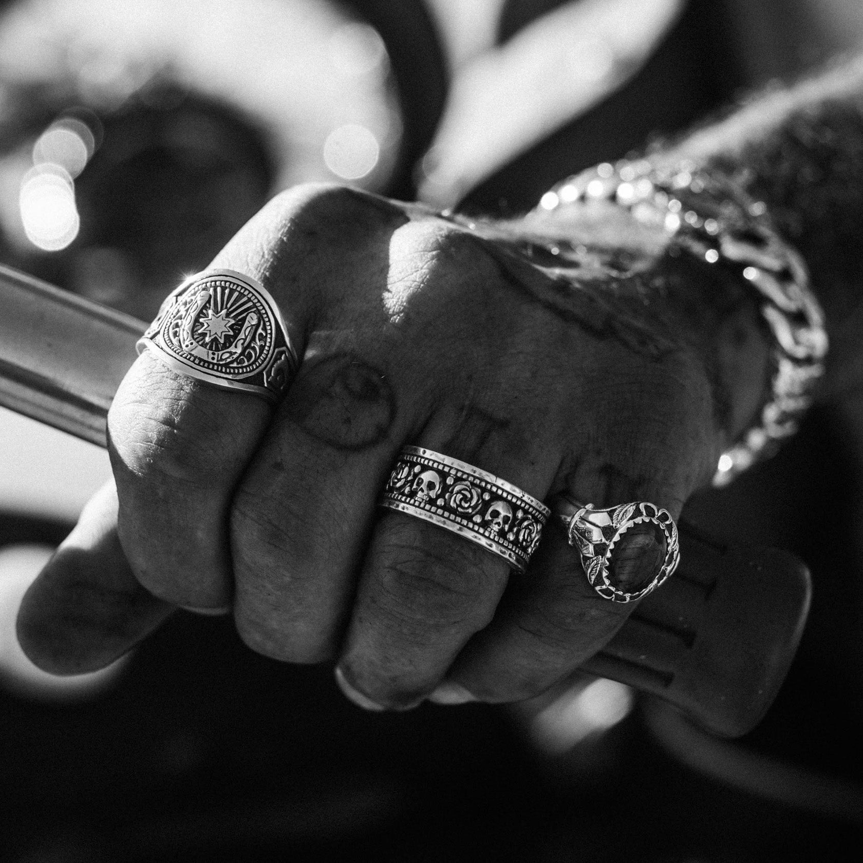 Gifted my guy the Brimstone ring as skulls and roses are his favorites and this ring captures both of those elements perfectly. Was super happy with the quality and the weight (19 g). It is a substantial piece and a great addition to his collection. He loves it, and so do I! Product was shipped and received quickly. I will definitely be ordering more pieces in the near future. 🌹 💀