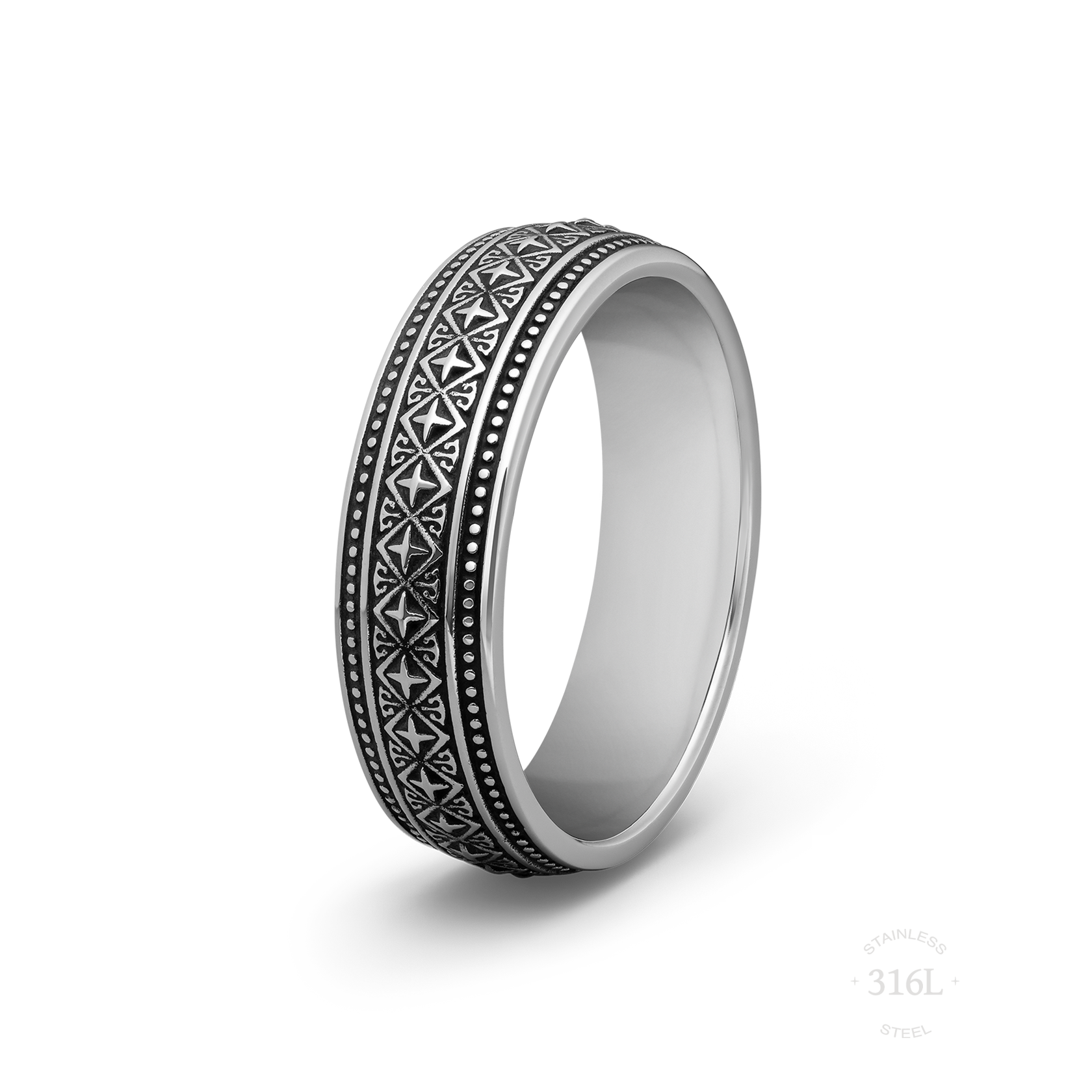 Crafted with an intricate pattern and marked by a four-point star, the Sequence ring captures the rhythm of life’s many twists and turns. Each detail speaks to the harmony within chaos, a symbol of the beauty that emerges from life’s shifting paths.