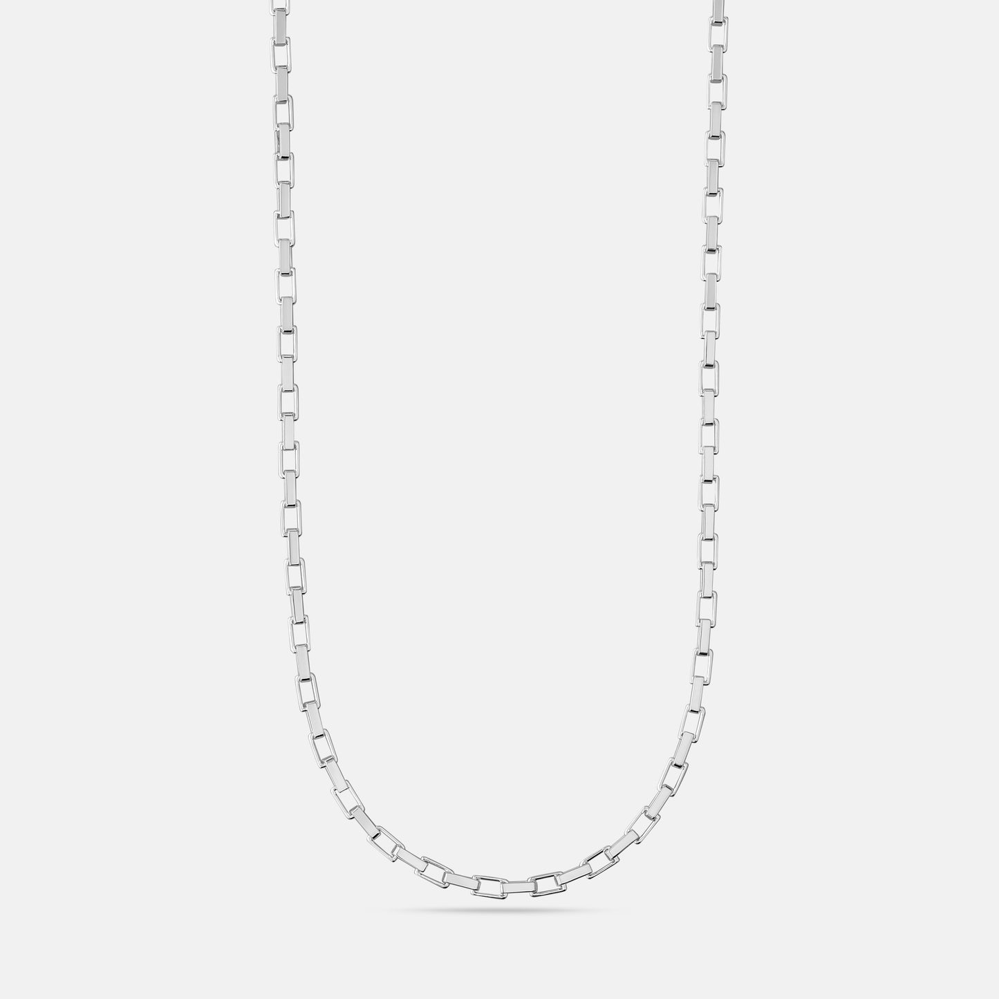 Geometric precision meets classic heritage in the Rectangle Link Chain. Each meticulously crafted link tells a story of hard-edged sophistication, seamlessly blending with any outfit or style. Finished with our signature monogram clasp, this is an essential piece for those who need a chain to take them from a bustling city night to a scenic countryside drive and back again.