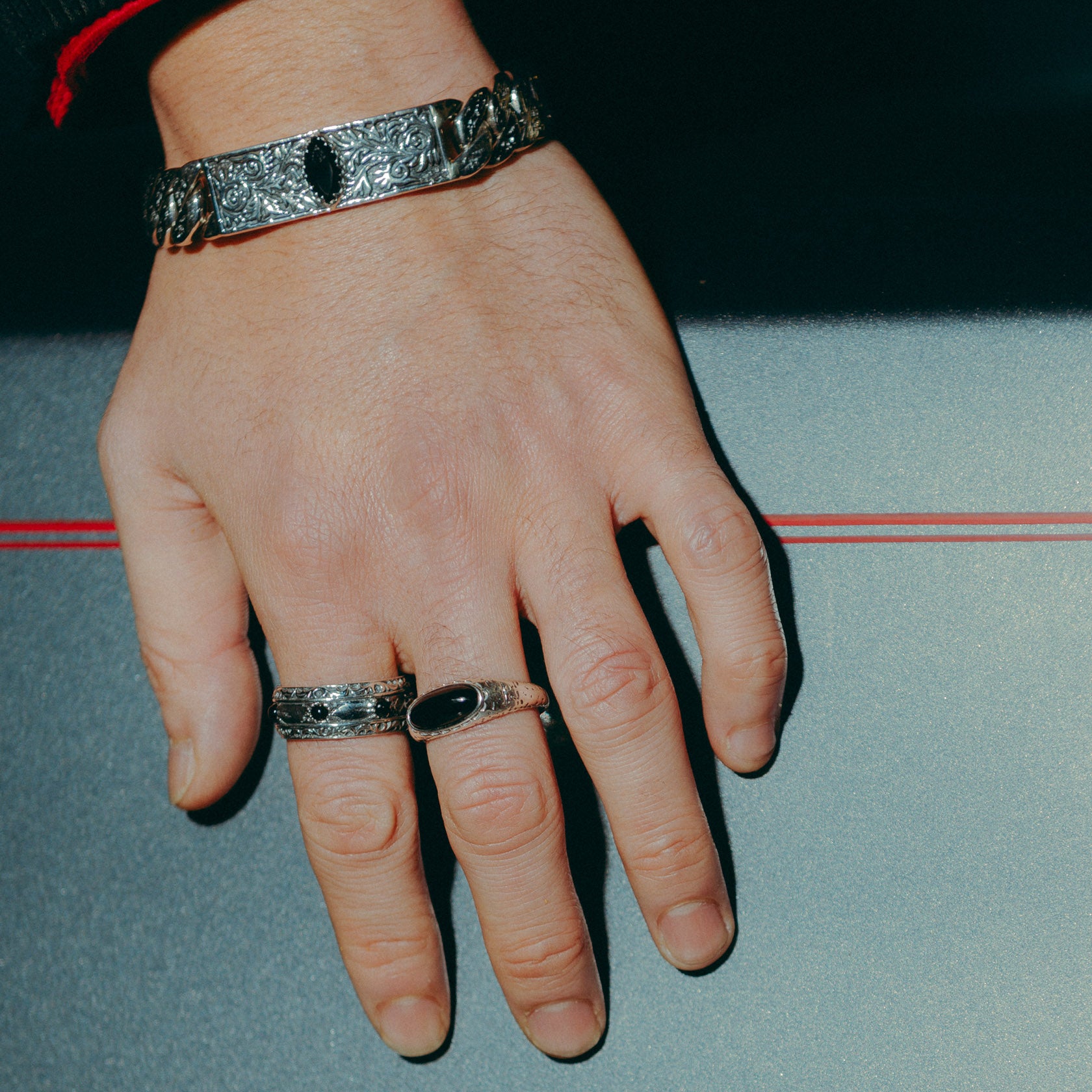 The Agora ring is built for the connections you trust most. With onyx stones set around a solid band, it stands for the friends and allies who’ve proven themselves time and again. Made to honour the bonds you choose carefully and carry with you.