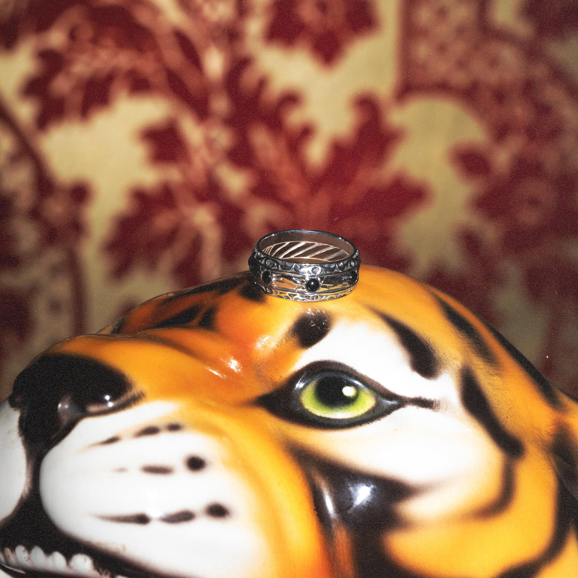 Fantastic well made silver piece. I love this ring and the onyx stones around it.