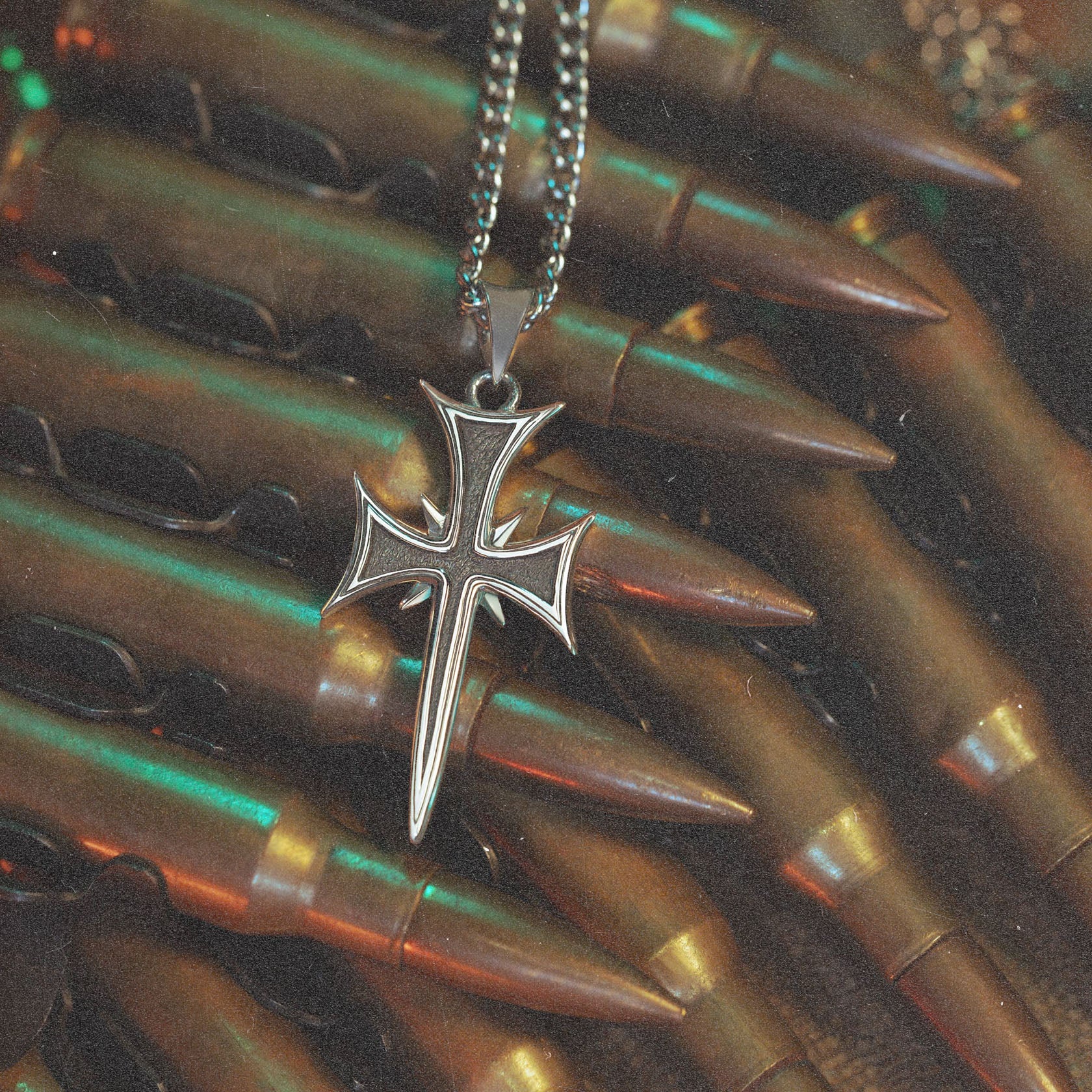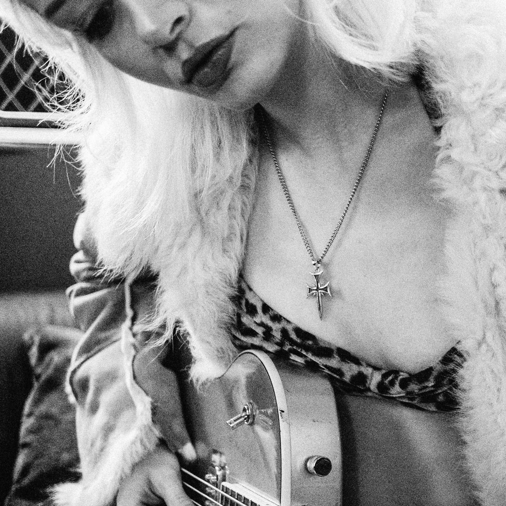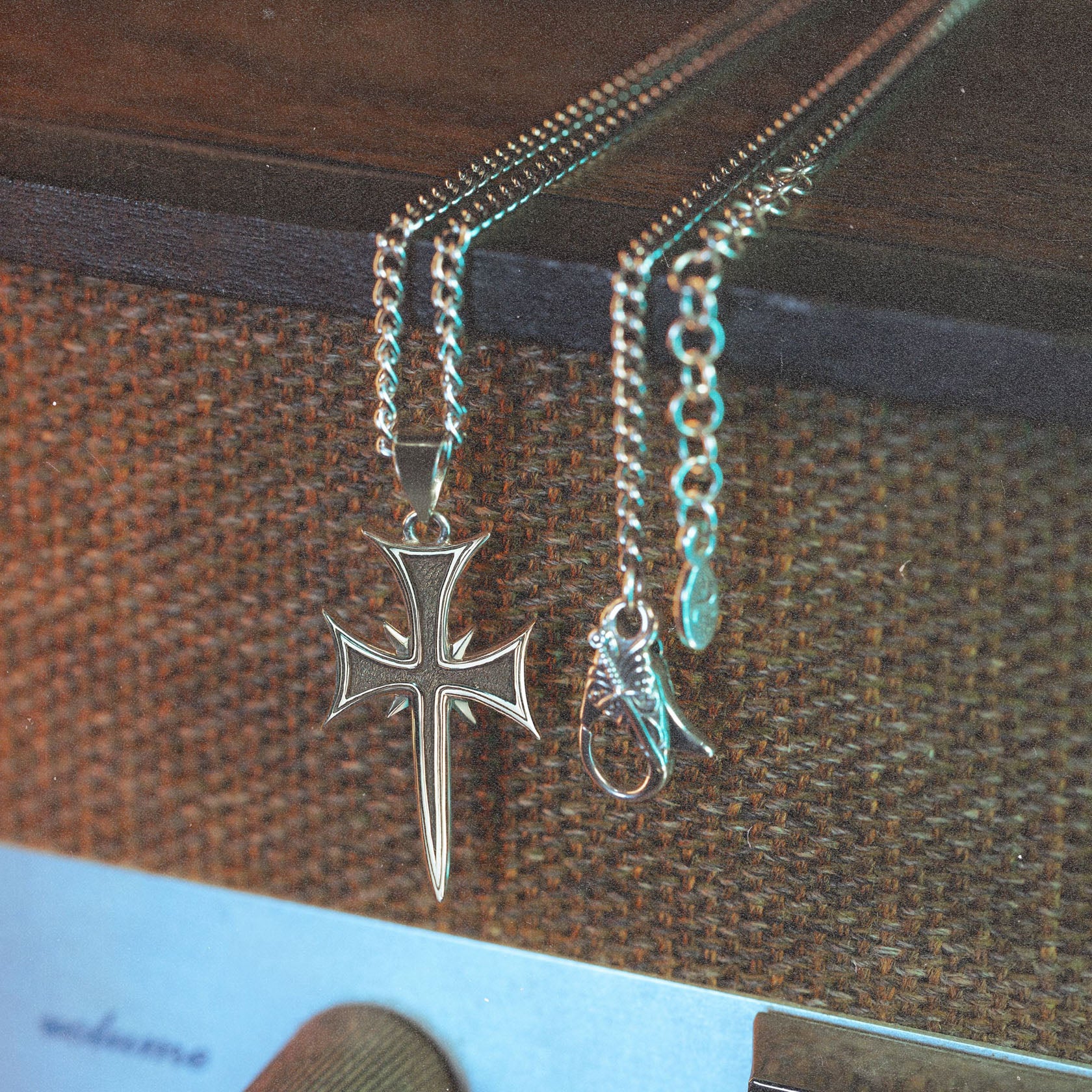 Created in collaboration with Milkie Way, bassist and vocalist of the band Wargasm, the Overkill pendant is a sharp but delicate cross inspired by Celtic crosses from Milkie’s past. This limited edition piece features ornate twin swords on the clasp, continuing the theme of deadly delicacy.