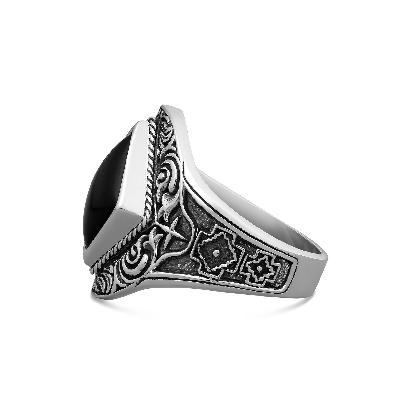 I work at a high end sushi restaurant and I'm frequently getting complimented on this ring. It looks unique and I haven't seen one like it. High attention to detail on this ring. Makes the onyx stand out perfectly!!