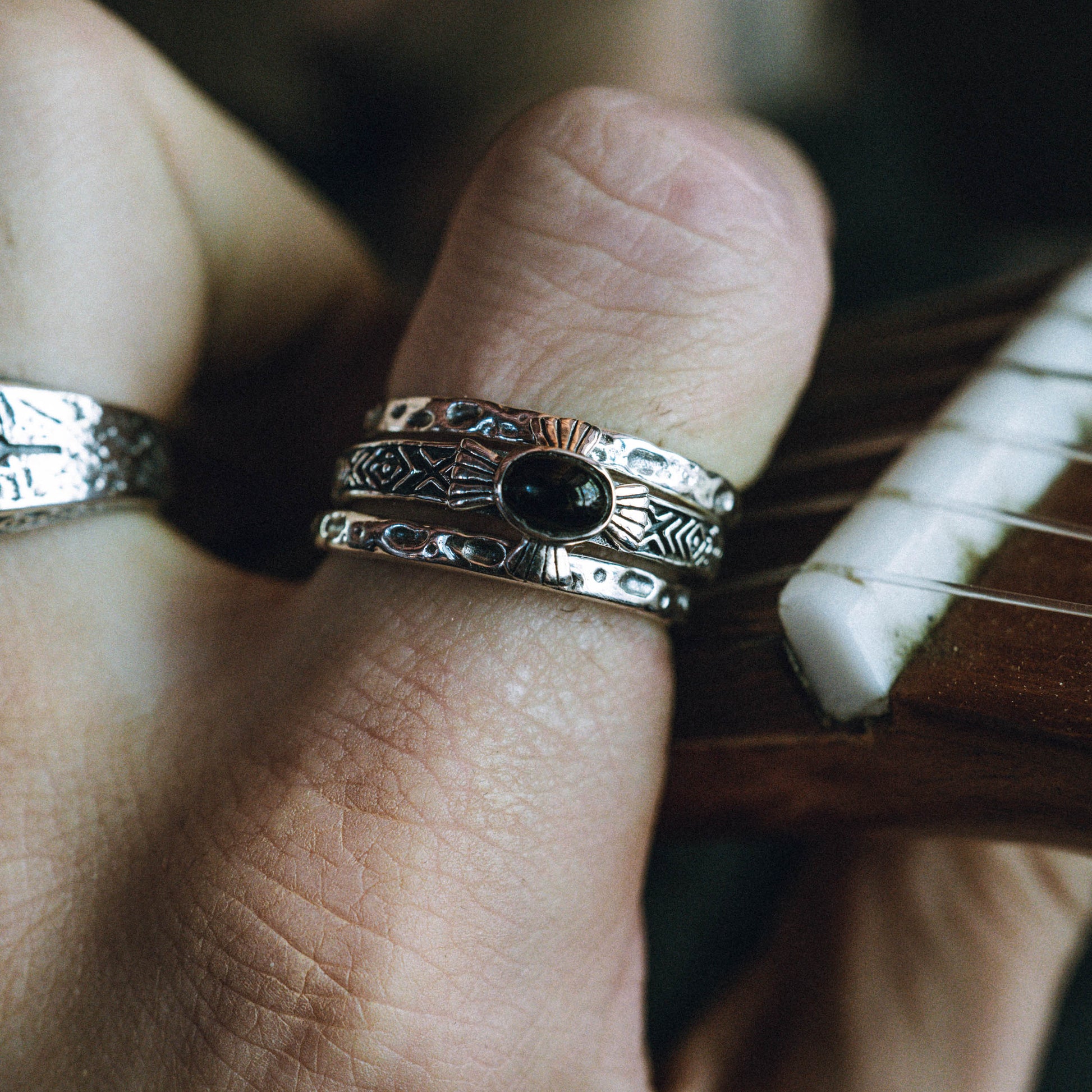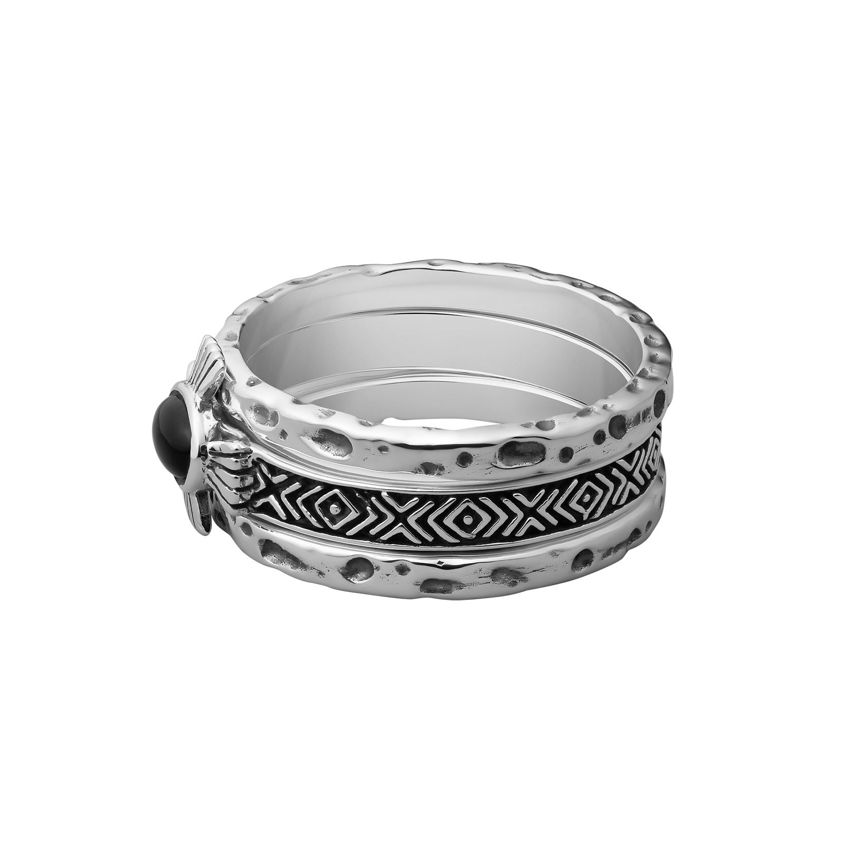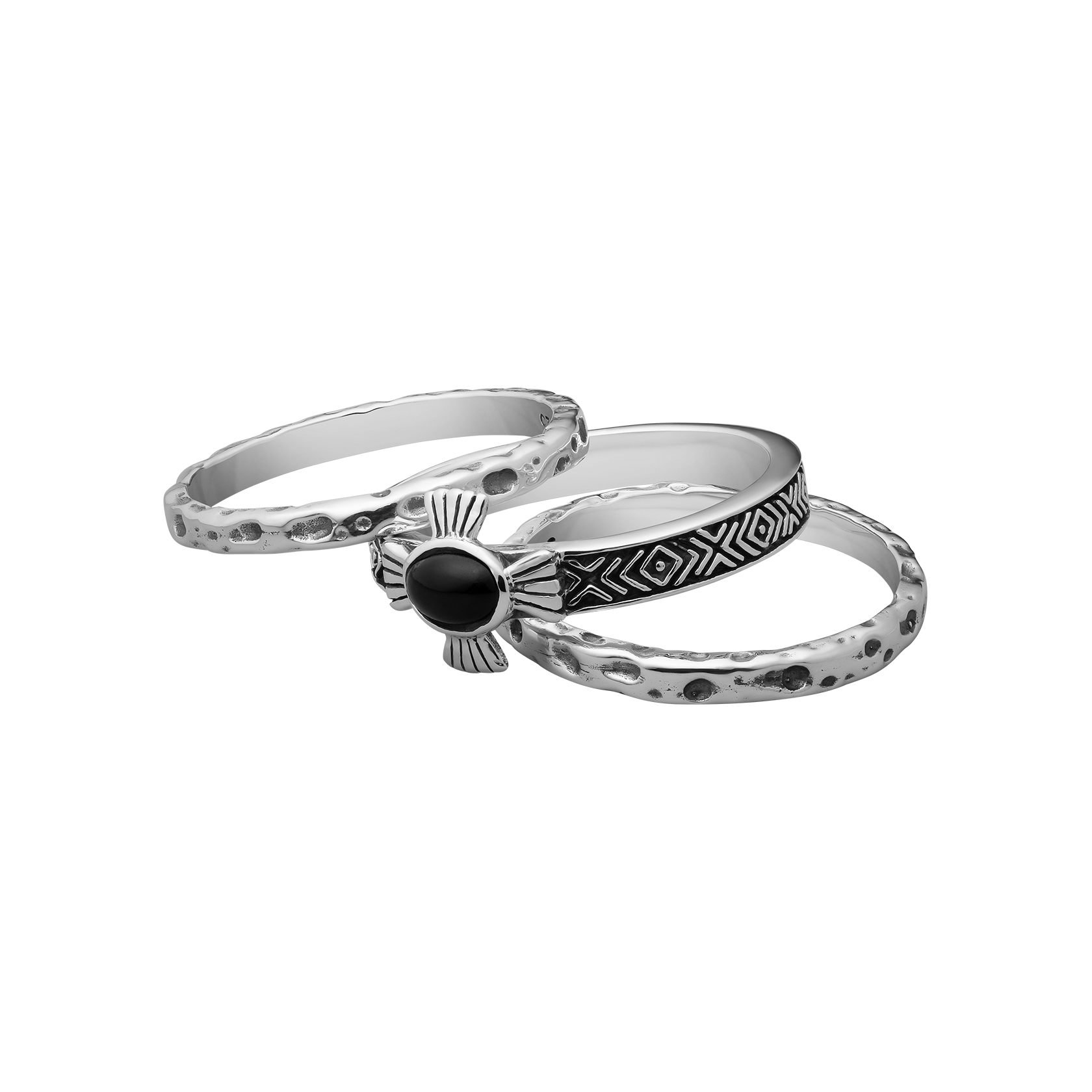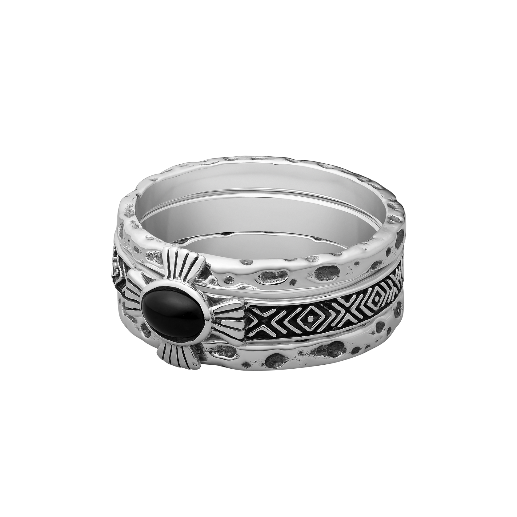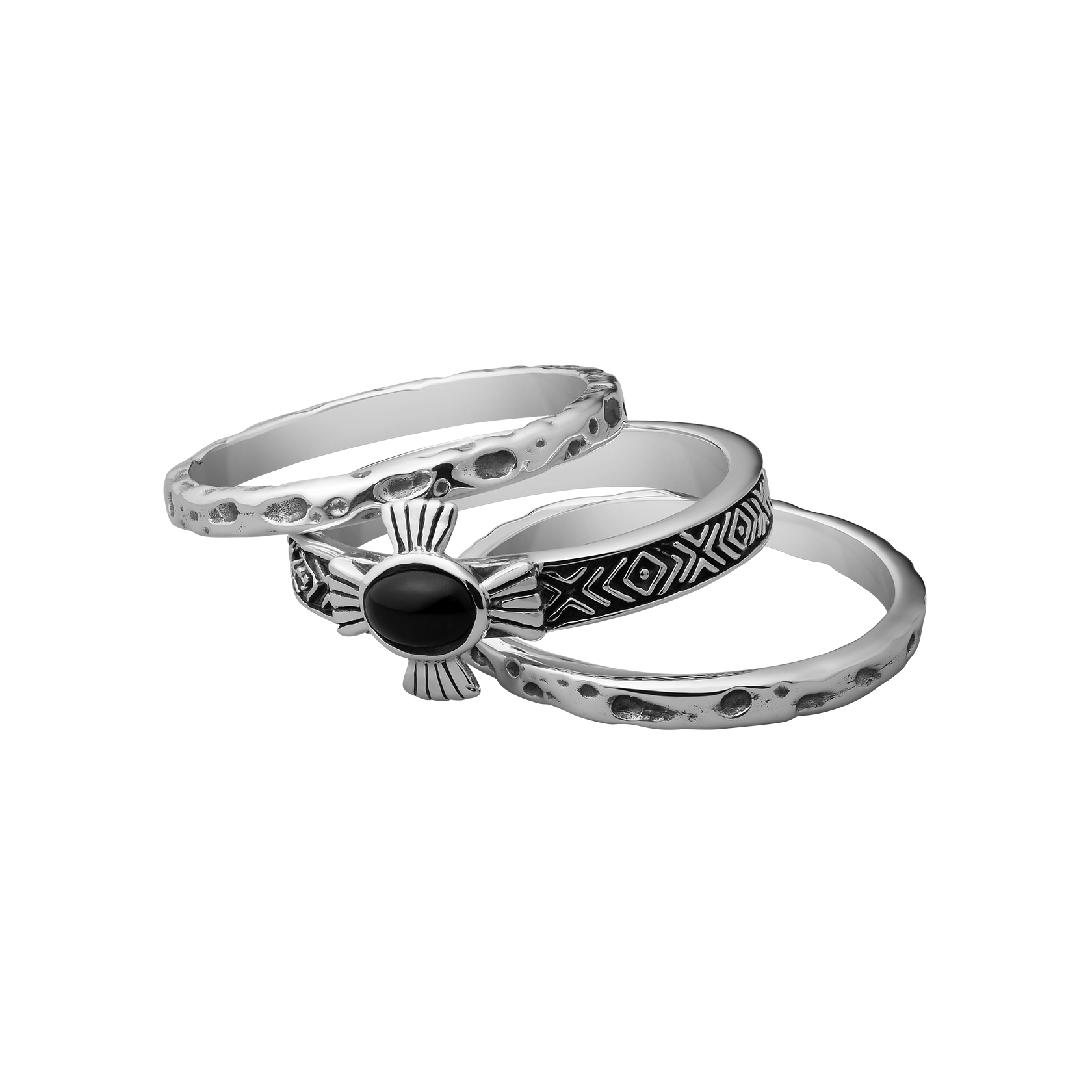 Set of 3 rings. Handcrafted Sterling Silver with Black Onyx stone.