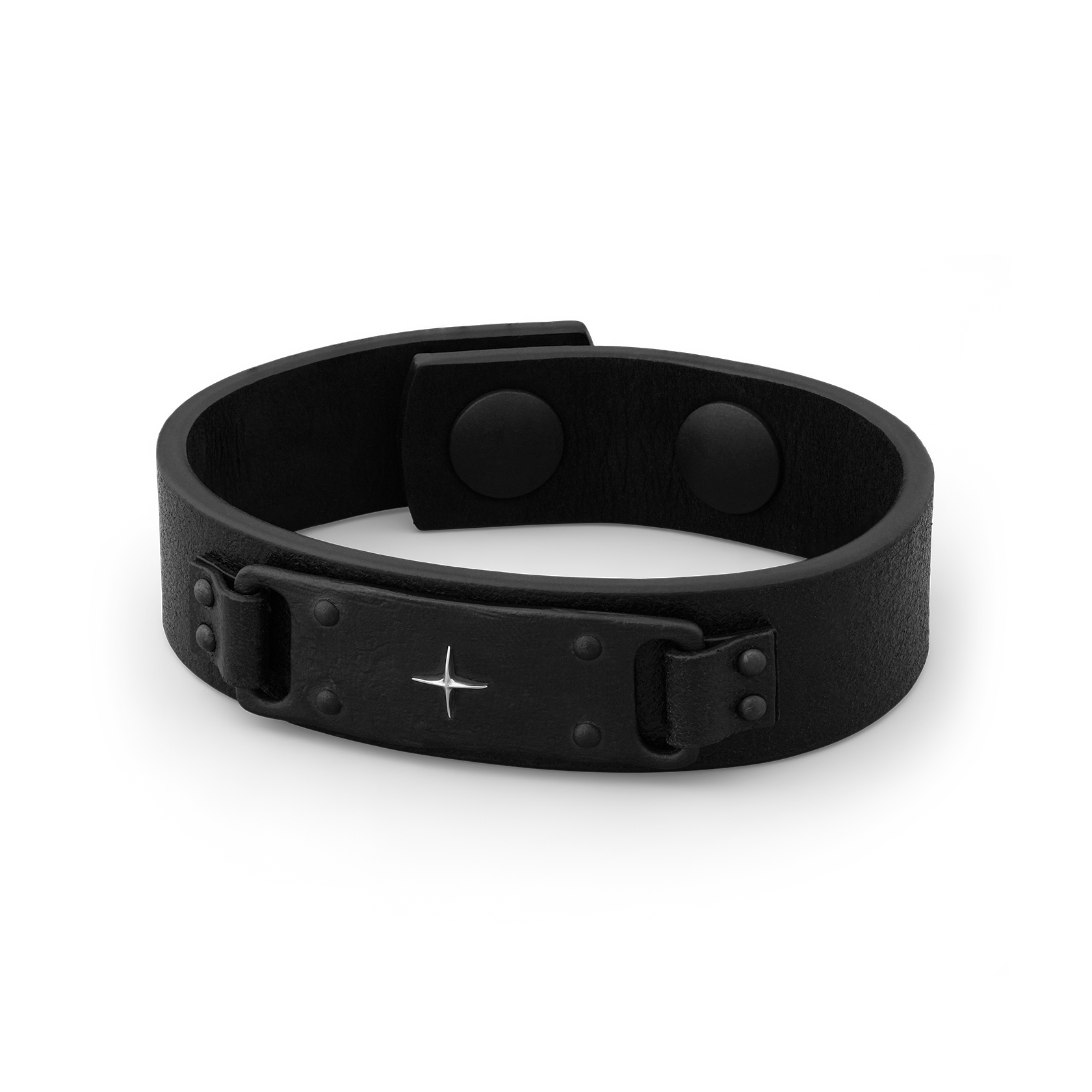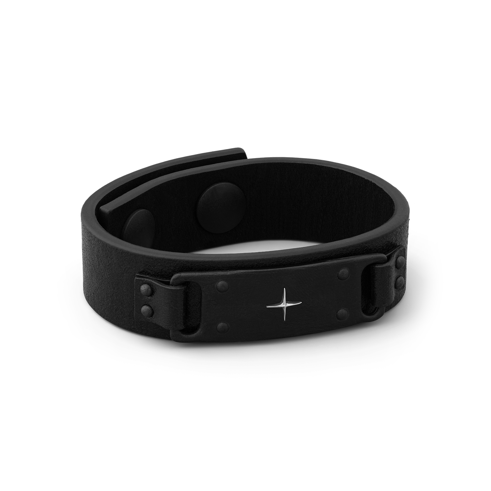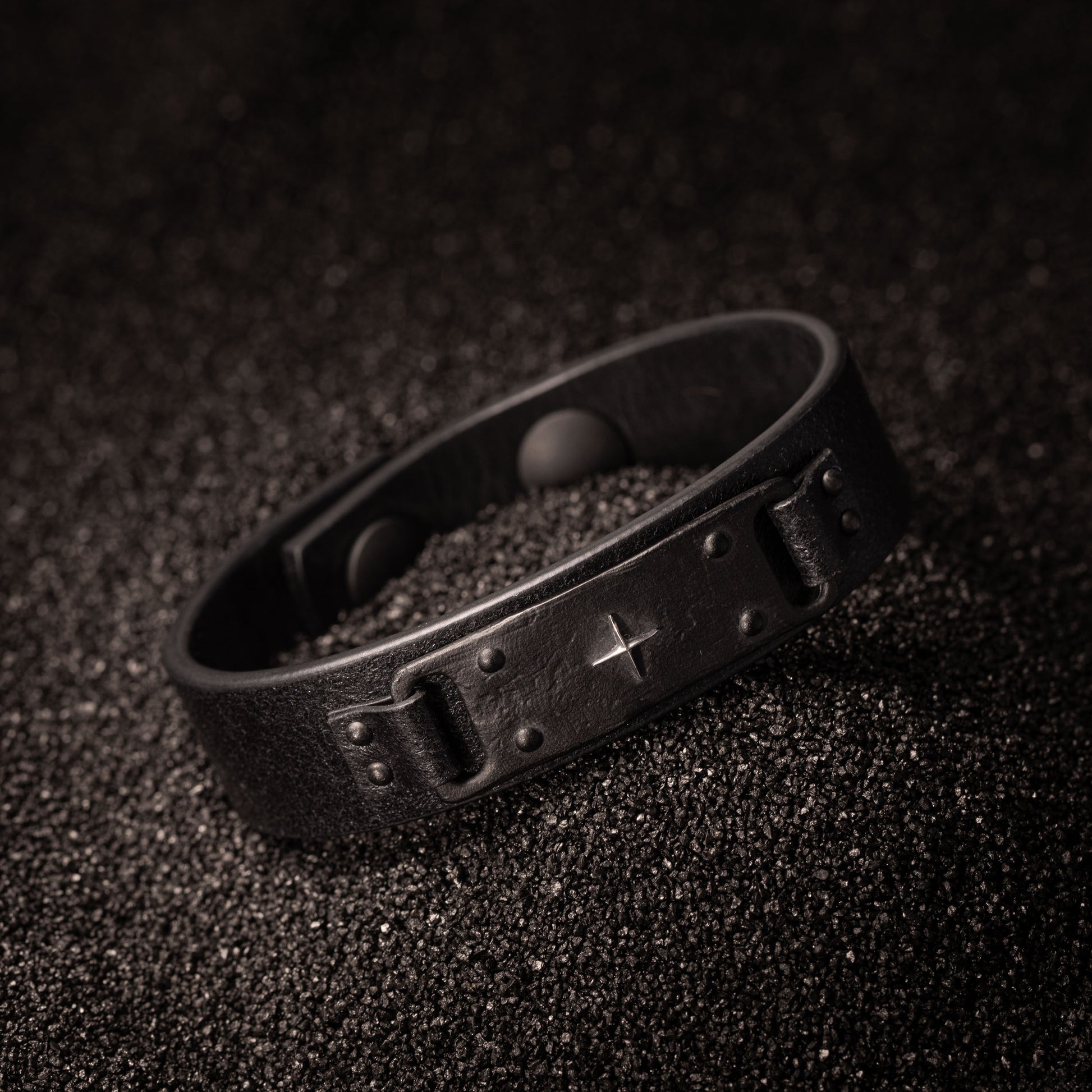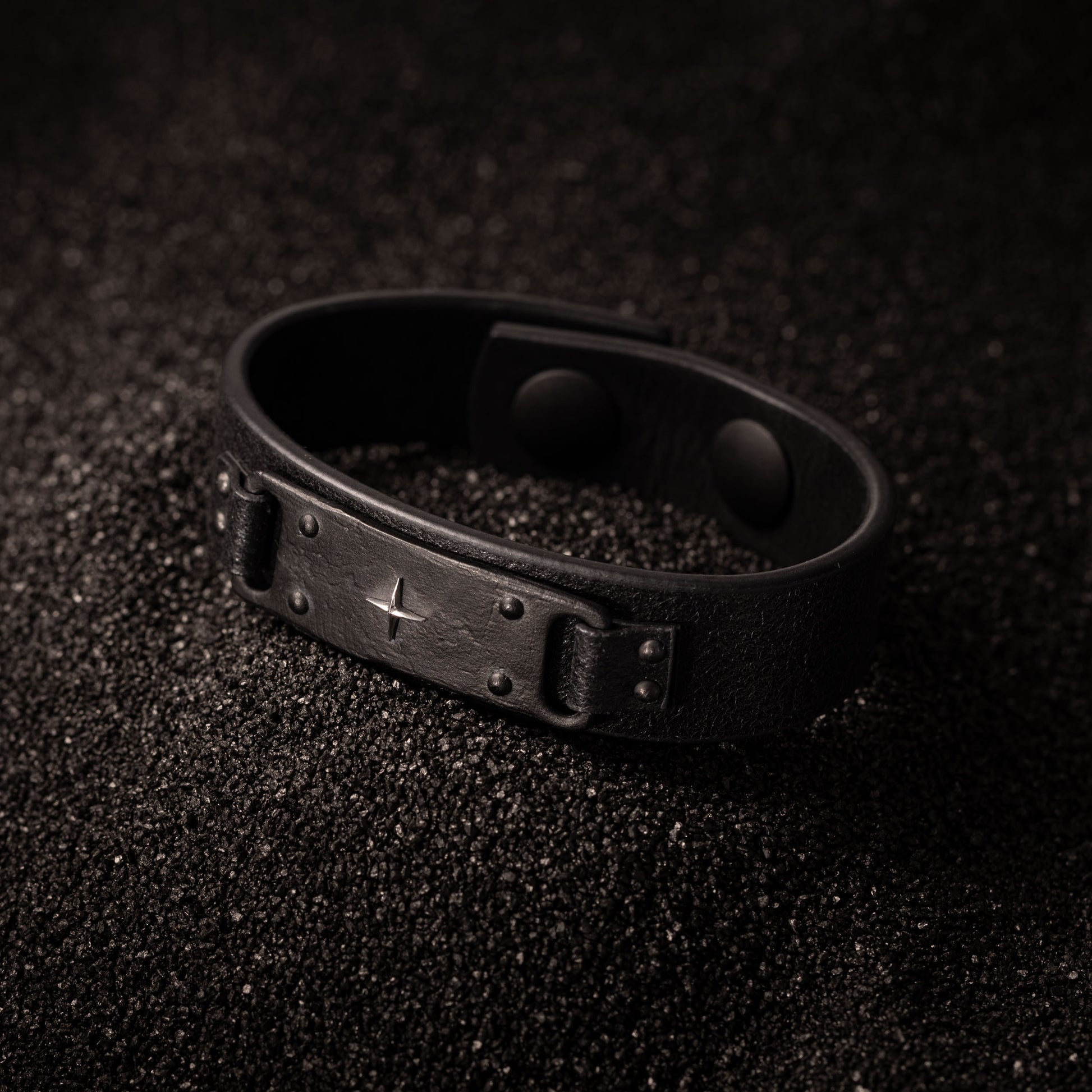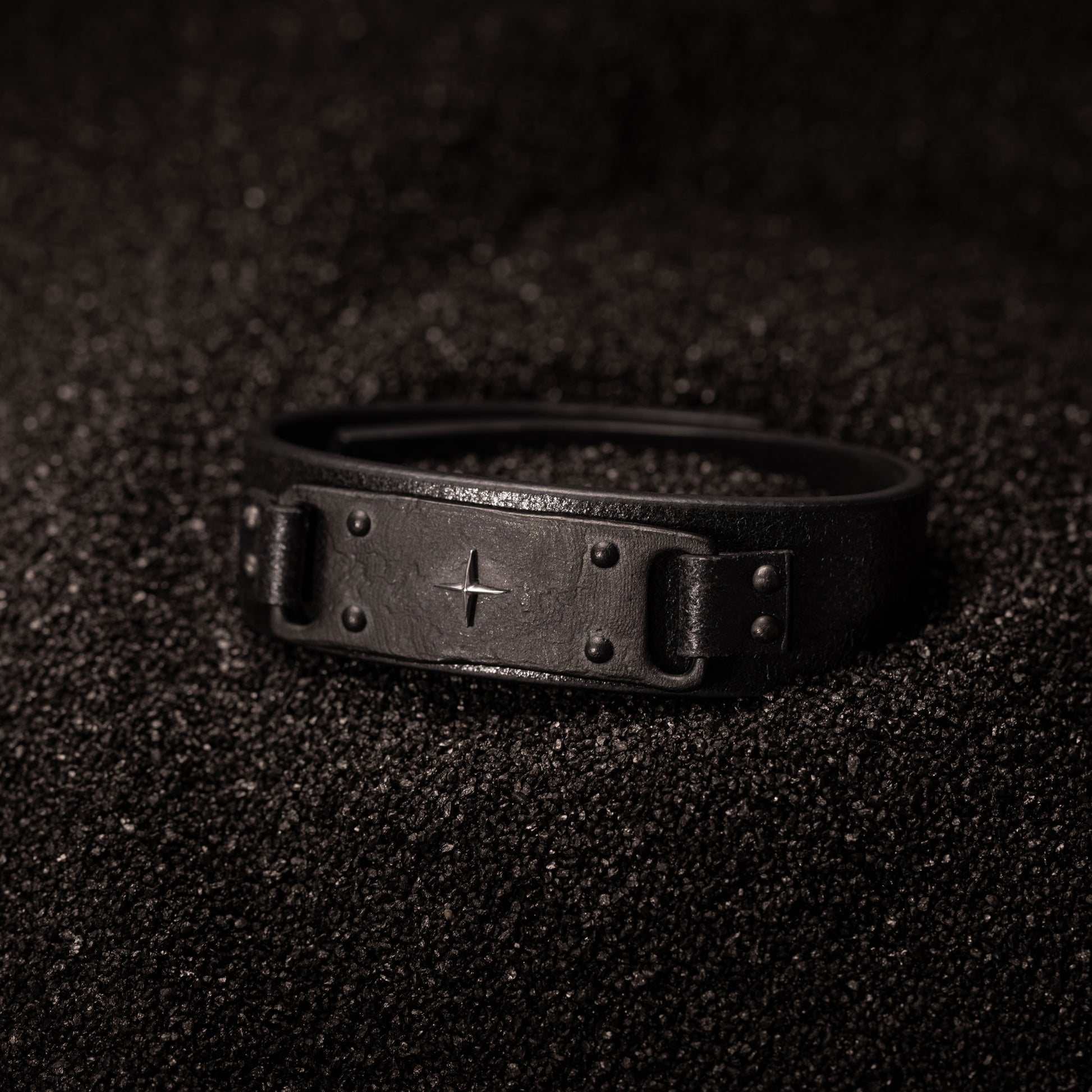 Over time, you collect layers—experiences, mistakes, wins, scars—and you wear them whether you mean to or not. Strata is a cuff that does the same. Crafted from thick black leather and finished with our four-point star in silver, it’s built to feel solid, grounded, and unmistakably yours. Nothing about it’s polished—and that’s the point. Only 80 exist. That’s all it needed to start.