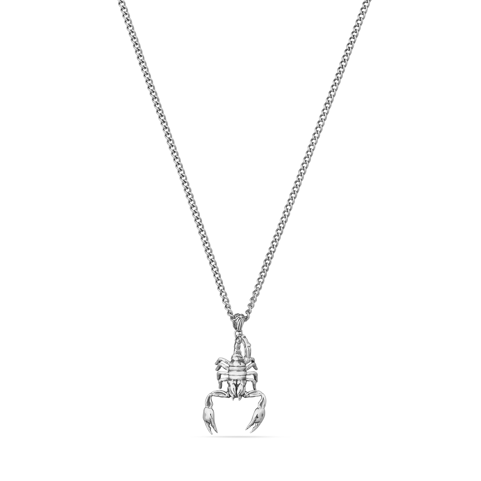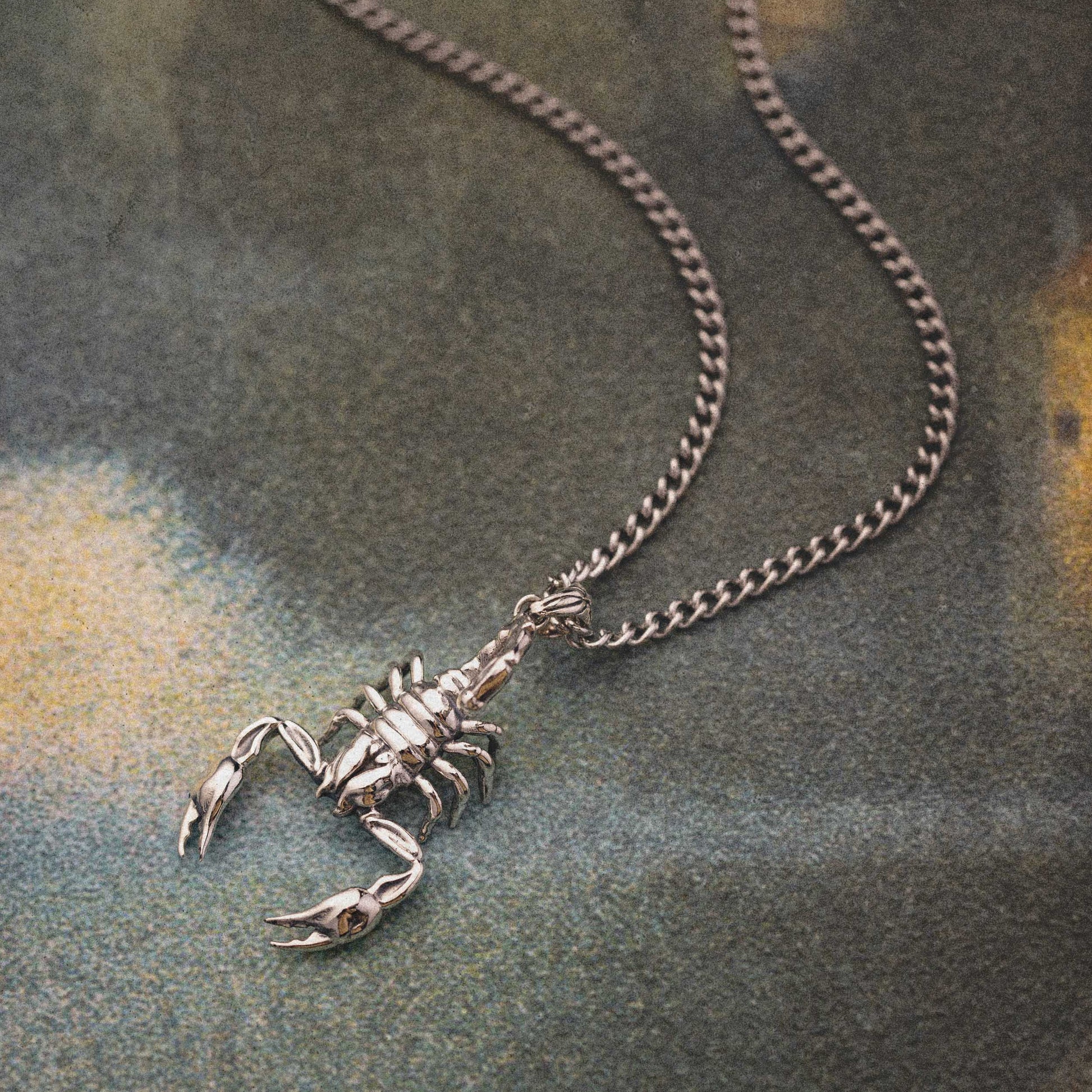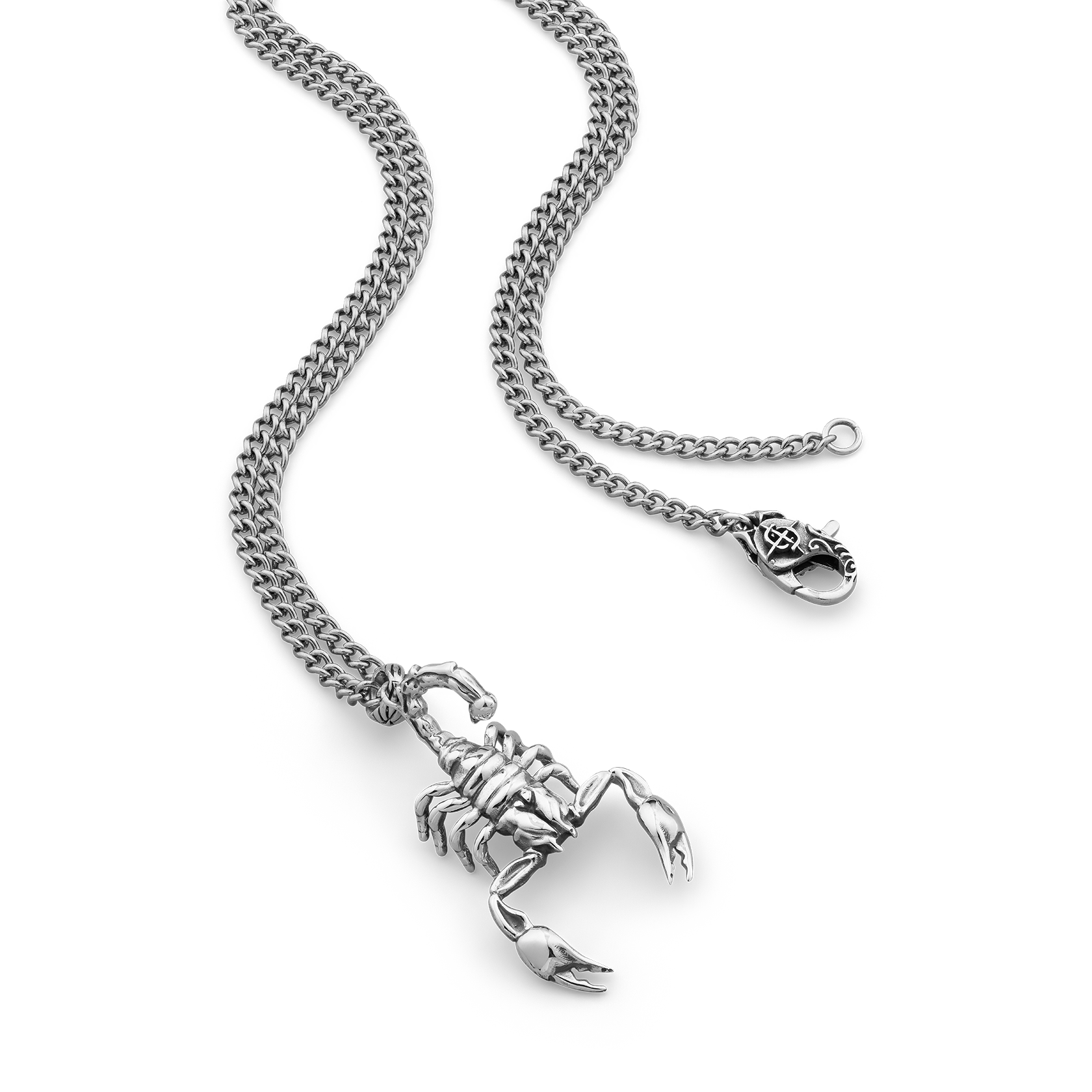 Handcrafted Sterling Silver pendant on a 55cm long x 3mm thick Stainless Steel chain.