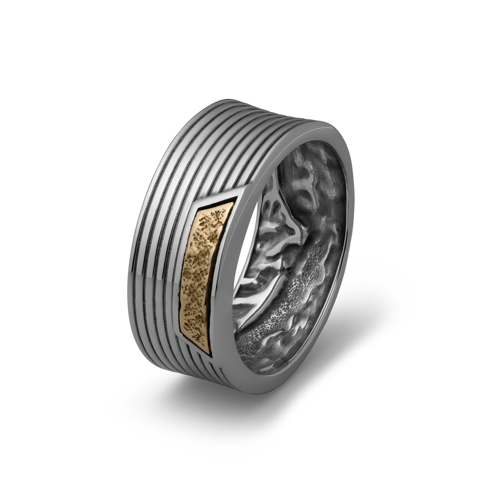 Handcrafted Sterling Silver Ring with Brass Inlay.