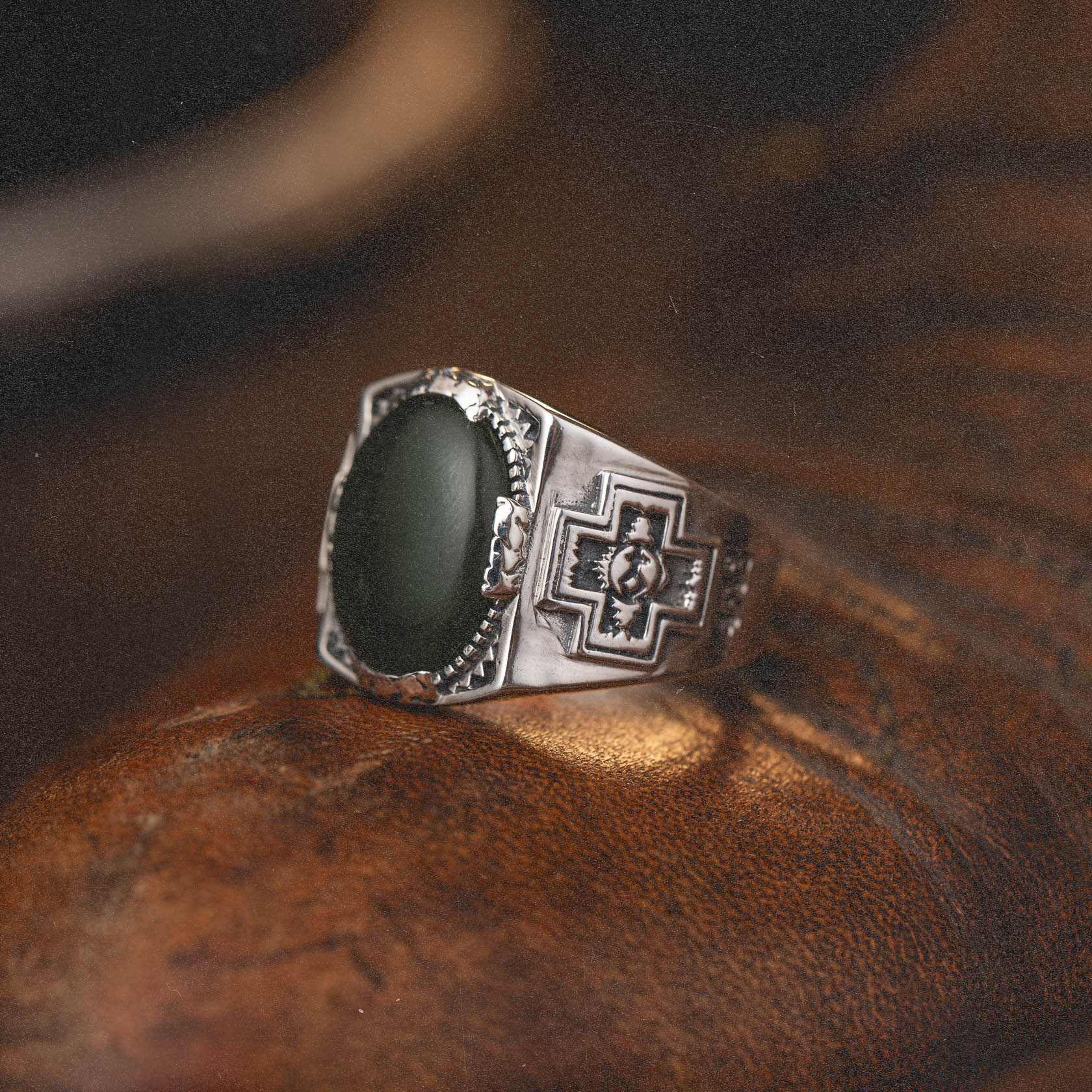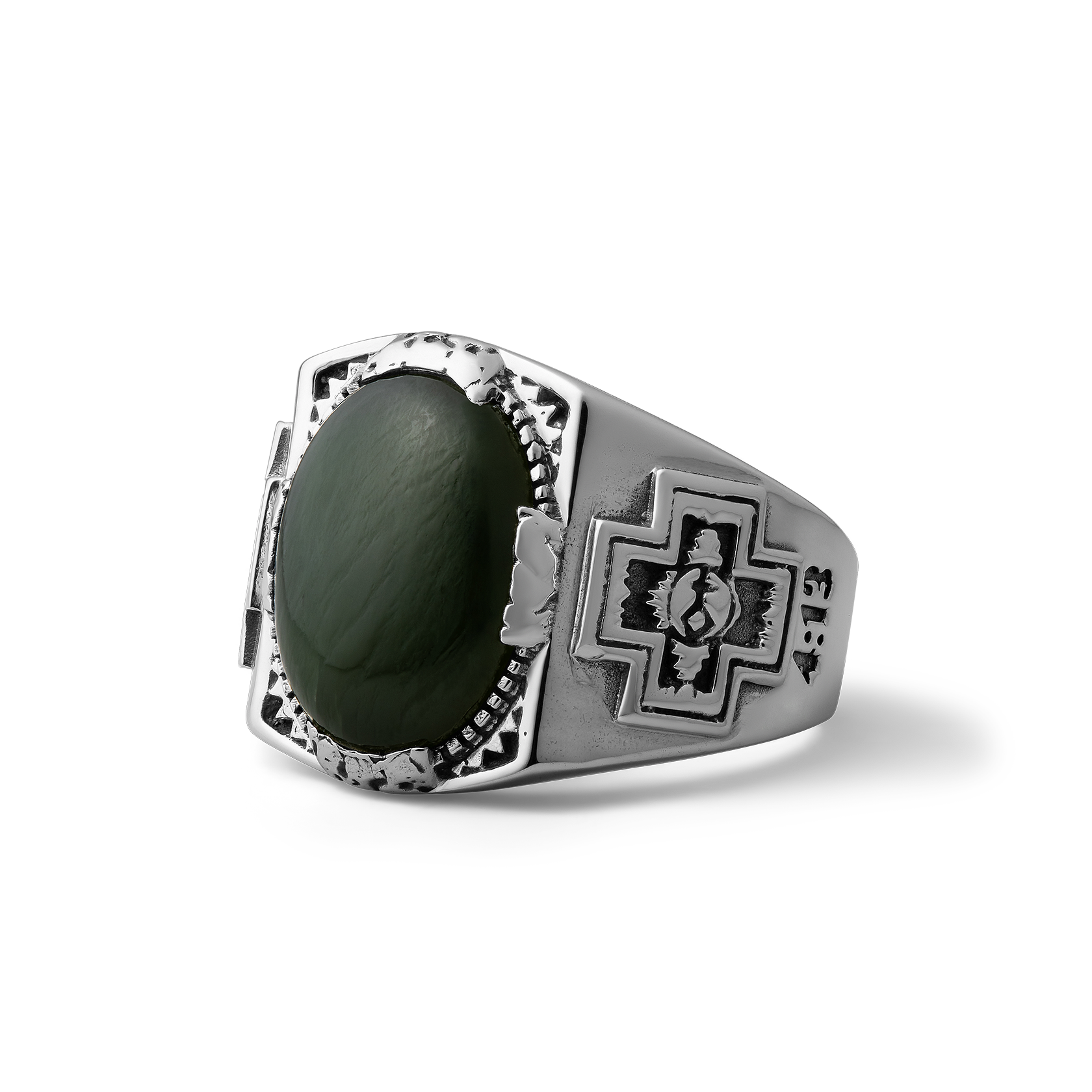 Handcrafted Sterling Silver Ring with Nephrite Stone.
