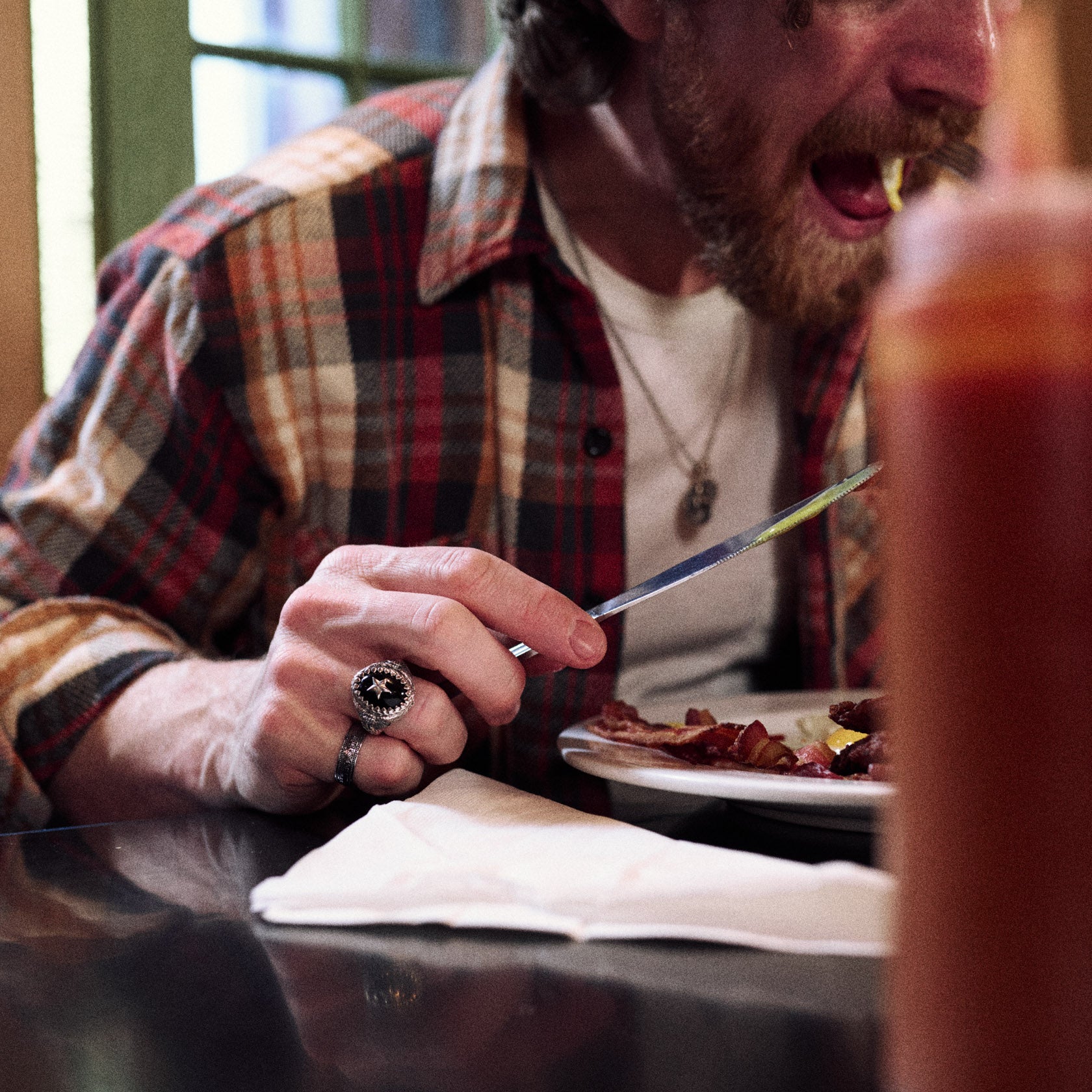 Our jewelry is cast from .925 sterling silver and surgical-grade stainless steel, rigorously tested for purity, strength, and longevity. We source real, ethically mined stones for their texture and natural character, setting each one by hand to lock in both beauty and durability.
