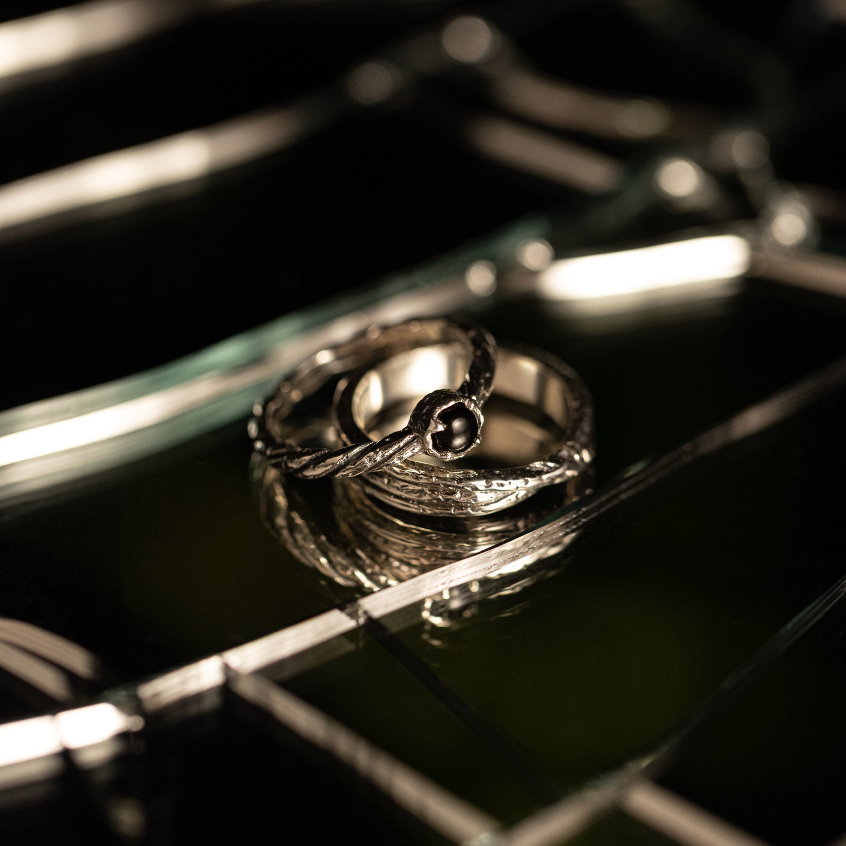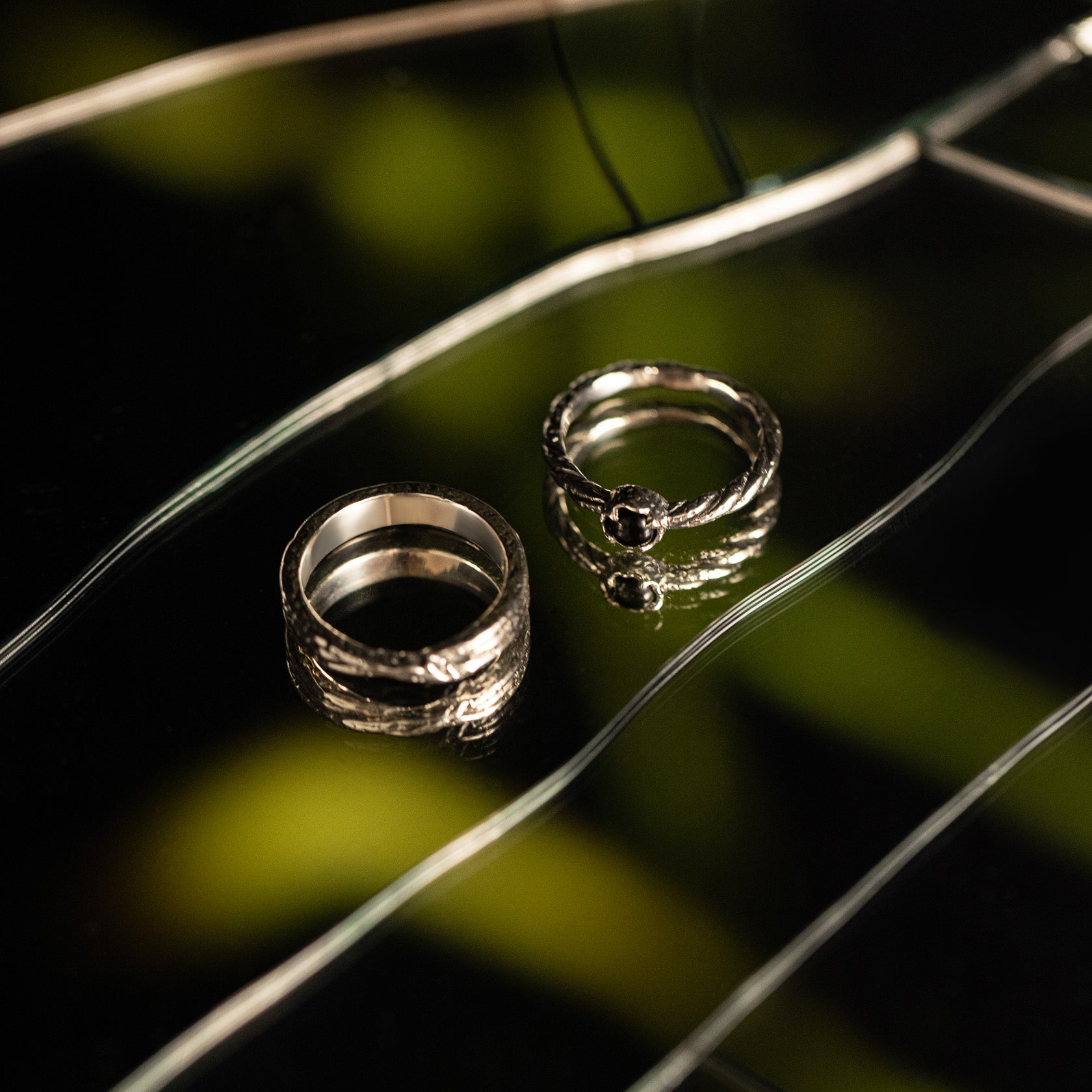 Our jewelry is cast from .925 sterling silver and surgical-grade stainless steel, rigorously tested for purity, strength, and longevity. We source real, ethically mined stones for their texture and natural character, setting each one by hand to lock in both beauty and durability.