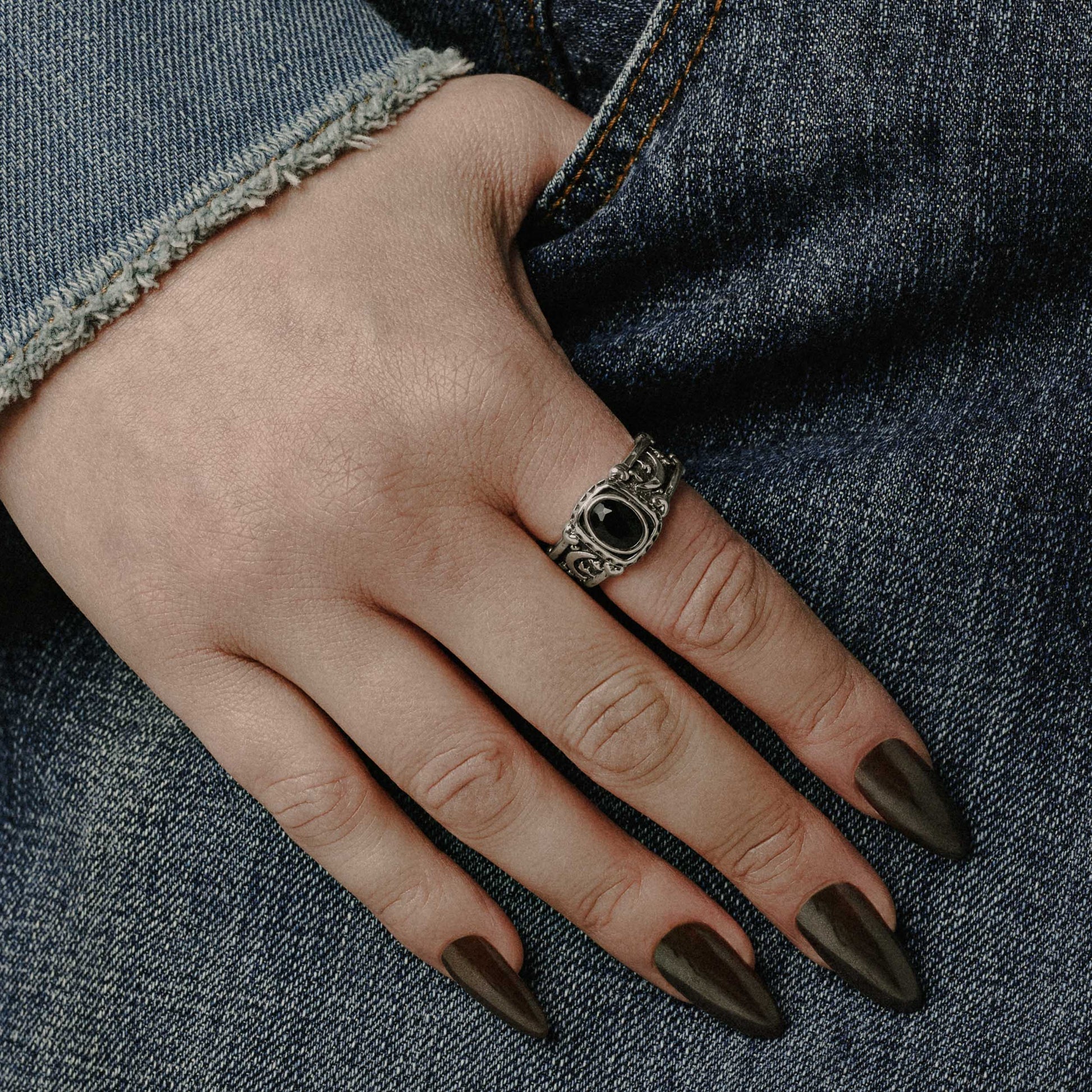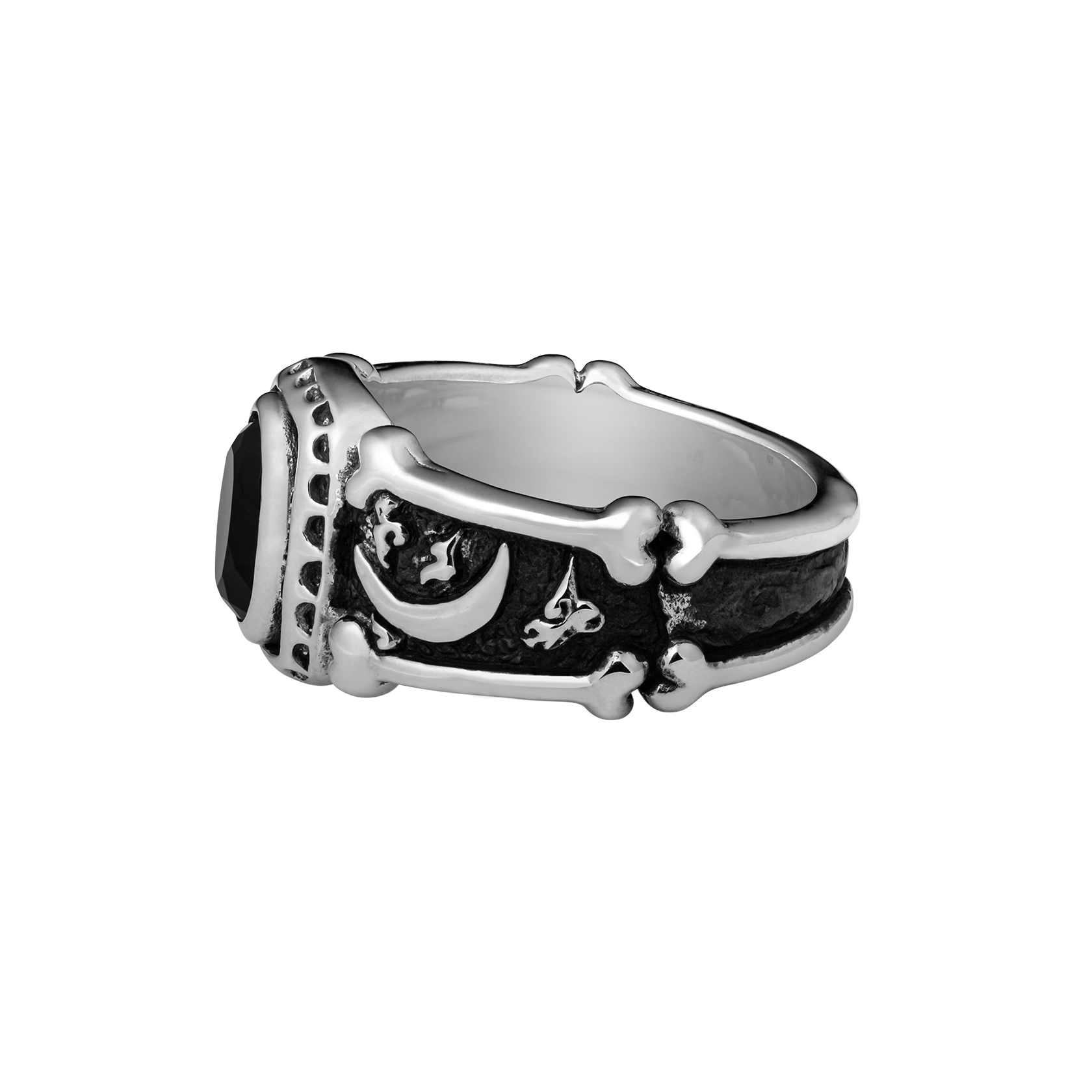 Under the light of a crescent moon, the dark beauty of this beguiling ring may just cast a spell on you.