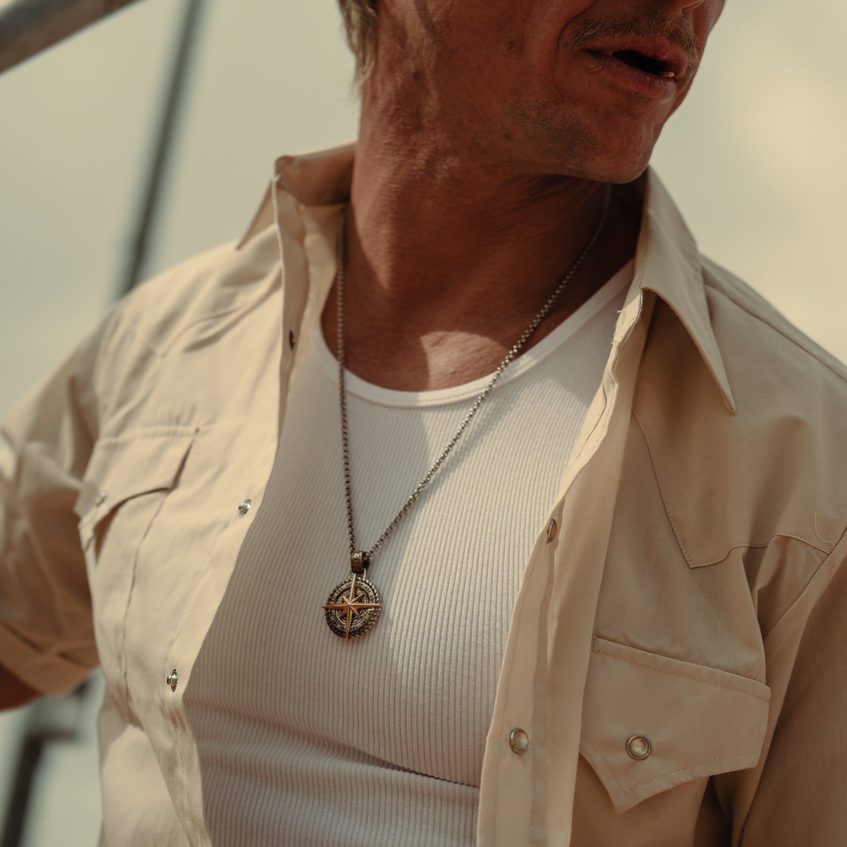 Embark on the journey with the North Star as your guide. This piece recalls the countless souls who once looked skyward for direction, trusting in a celestial spark to light the way. Anchored by a custom skull clasp, it’s a tribute to those who dared the unknown, finding adventure in every twist and turn.