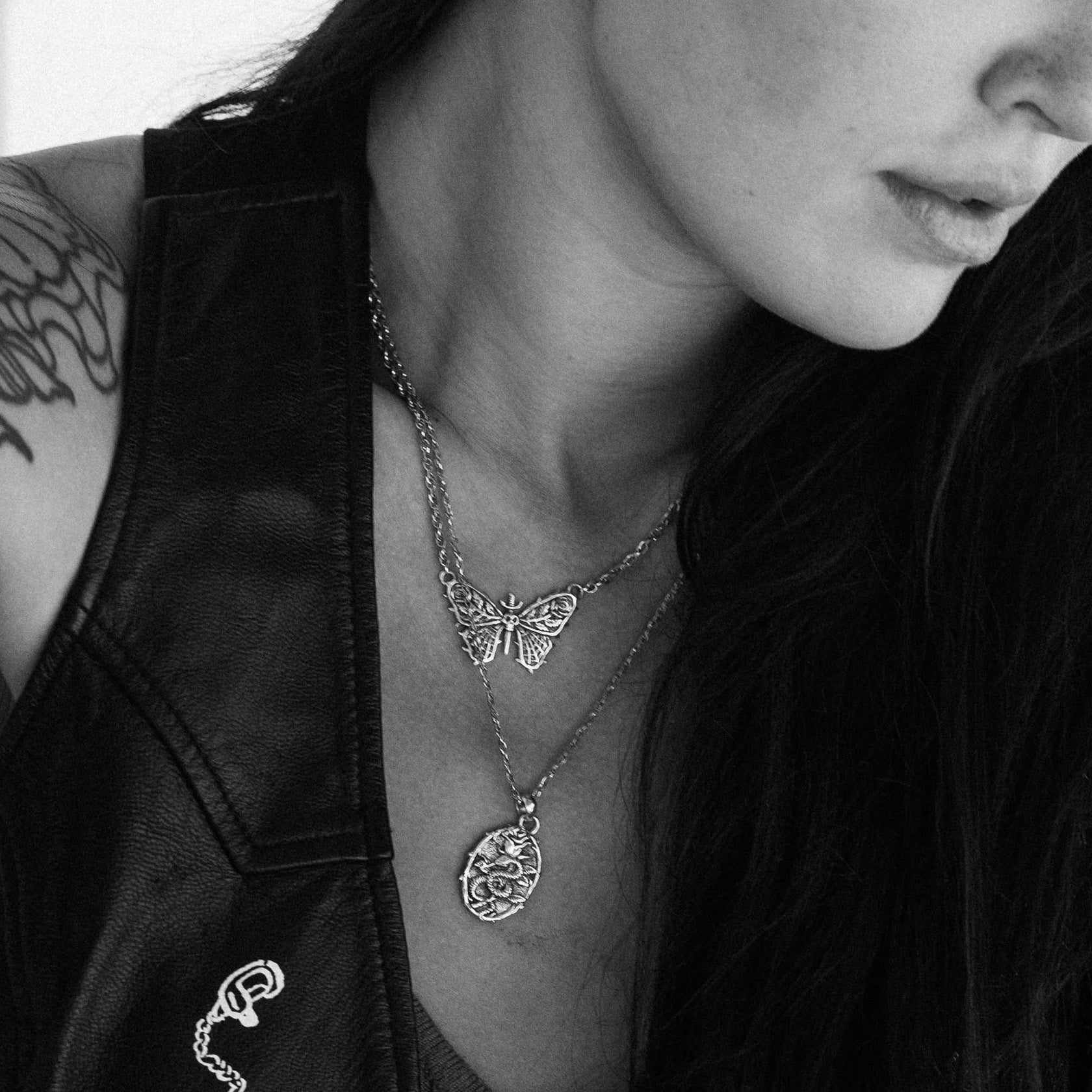 Marked by the haunting image of the Death’s-Head Hawkmoth, the Omen pendant embraces the aura of mystery. A symbol of both beauty and darkness, this piece is for those who walk the line between fate and free will, a reminder that not all signs need be feared.