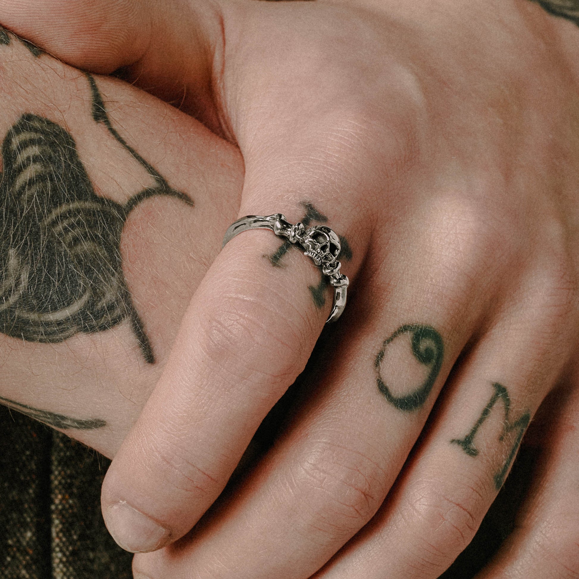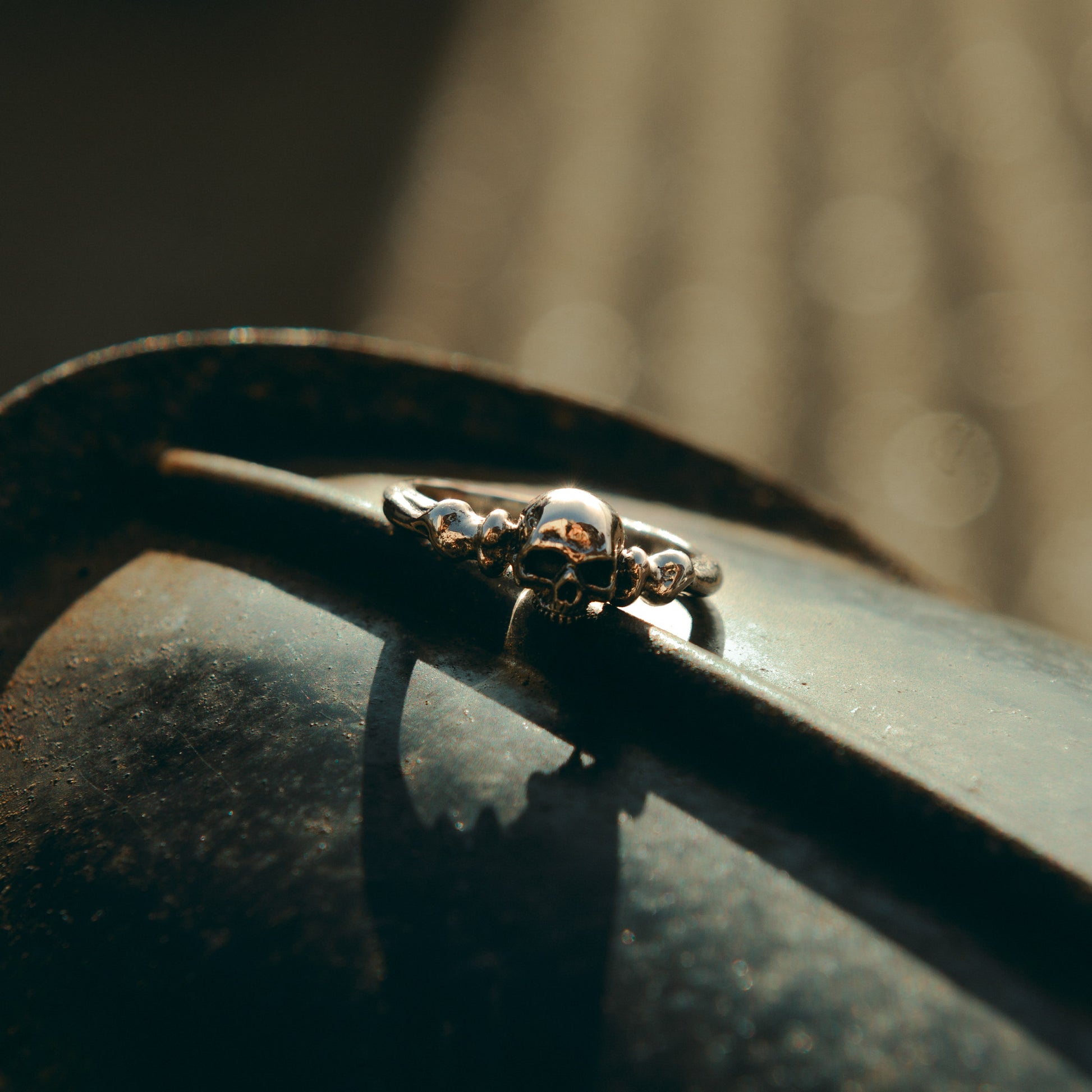 Designed in collaboration with Pete’s Pirate Life and Peter McKinnon, the Salt & Bone is a low-profile ring that carries a haunting effect, with a small skull united by a bone-inspired band. Wear it on its own or stacked with other Peter McKinnon x Clocks + Colours classics.