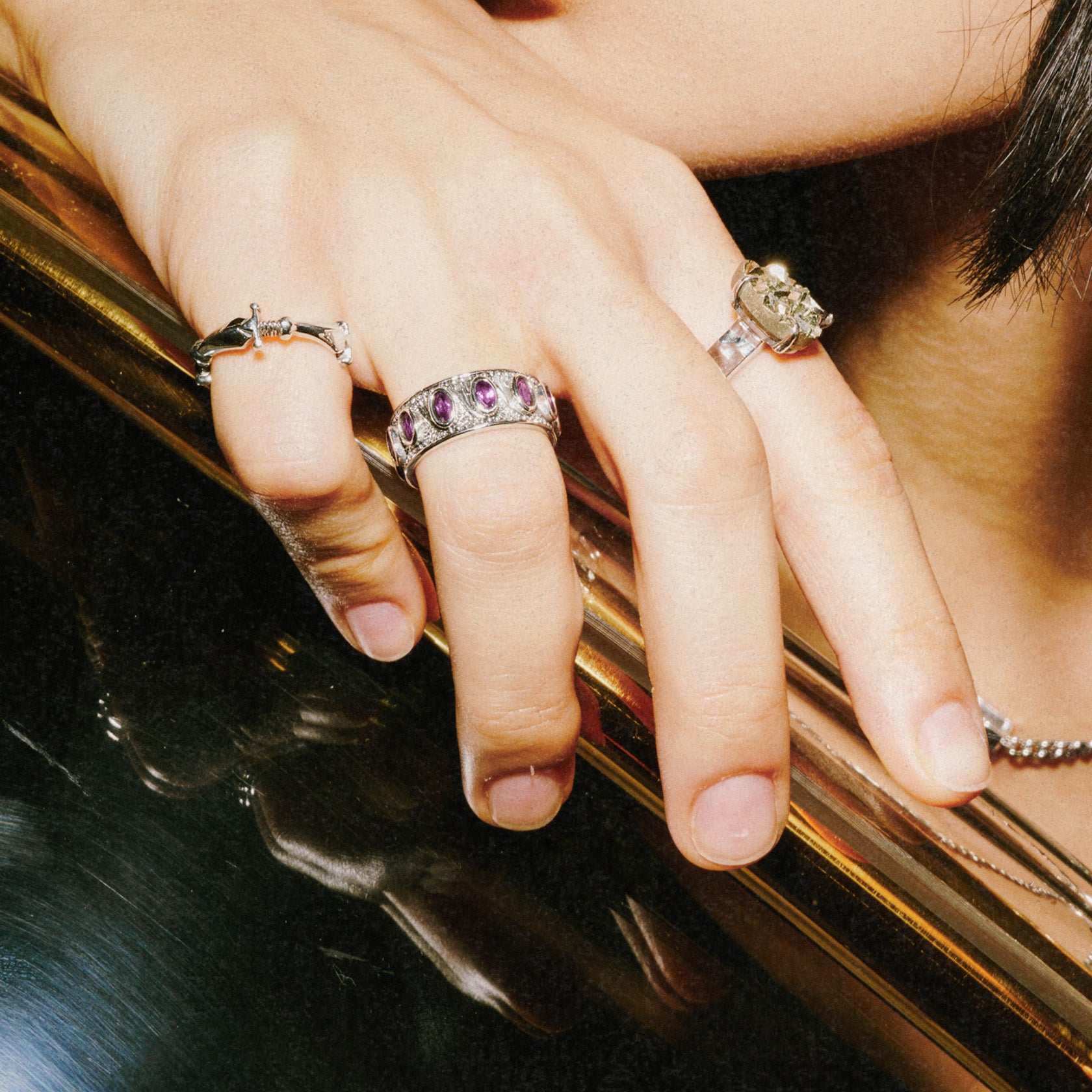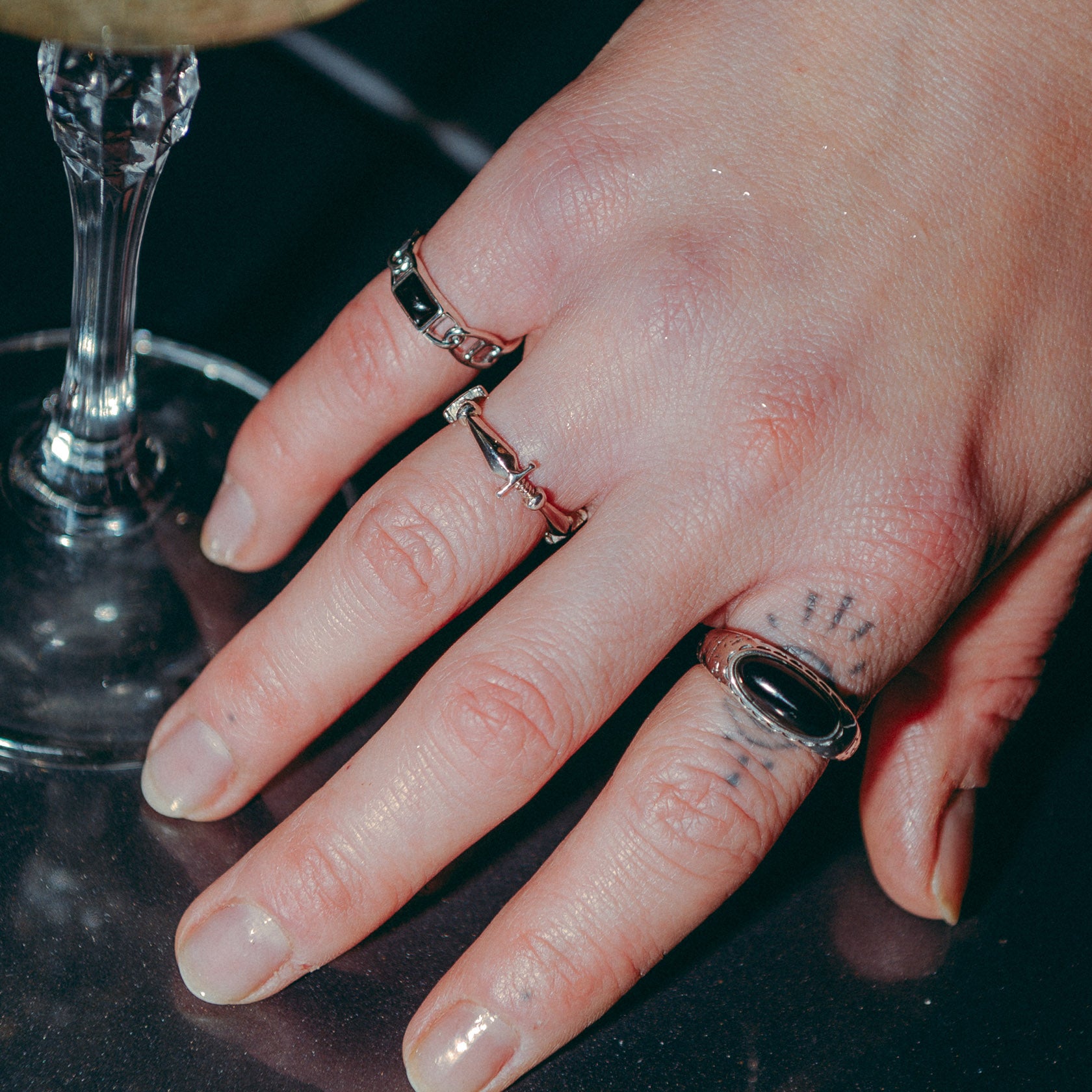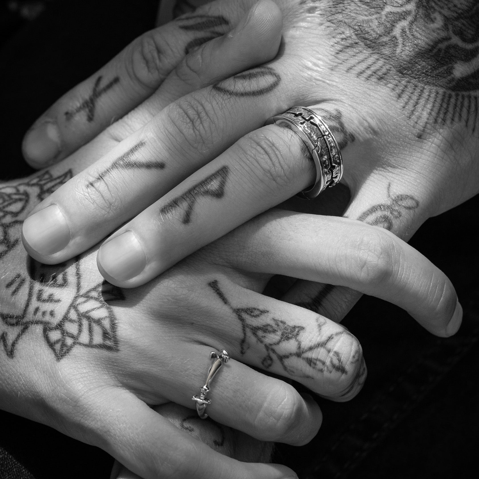 Crafted with a series of linked daggers, the Til Death ring (Hers) is a symbol of love’s fierce and unbreakable bond. When paired with its counterpart, it represents a promise carved in silver—a reminder that true connections remain sharp, even as they endure.